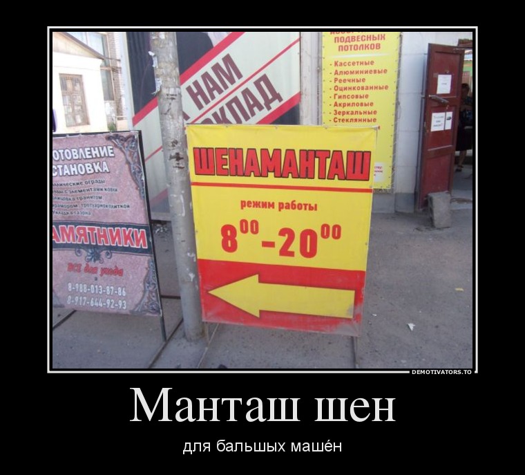* В связи с ремонтом парикмахерской укладка женщин будет производиться в мужском зале. * В семь вечера в среду в третьем подъезде состоится собрание. Повестка дня: выборы домового. * Ввиду холода в рентгеновском кабинете делаем только срочные переломы. * Вы получите биотуалет по любому адресу в Москве в течение одного дня. А вместе с ним инструкцию на русском языке и квалифицированную демонстрацию. * Вяжем детские кофточки из шерсти родителей. * Девушка по имени Лена, которую я встретил 12 октября неподалеку от станции "Кузьминки". Твои белокурые волосы и красное пальто - все, что у меня осталось. Прошу откликнуться. Игорь. * Делаем полиэтиленовые мешки по размеру заказчика. * Дети выдаются отцам только в трезвом состоянии. * Дети до пятилетнего возраста проходят в цирк на руках. * Завтра в 9.00 у магазина будет проводиться распродажа живых кур, по полторы на человека. * ЗУБЫ? Наши стоматологи сделают всö, чтобы вы навсегда забыли о них! * Кондитерская фабрика приглашает на работу двух мужчин - одного для обертки, другого для начинки. * Ларöк "Вторсырья" принимает отбросы общества охотников и рыболовов в виде костей. * Лифт вниз не поднимает. * Организация ищет бухгалтера. Вознаграждение гарантируем!!! * Молодой порядочный массажист выезжает на дом. * Москвичка ищет работу по специальности или бухгалтером. * Мыши и джойстики - удобные, точные и надöжные манипуляторы для правой, левой и большой руки. * Один звонок, и вам оформят свидетельство о смерти, изготовят венки! * Приглашаются грузчики для интересной работы. * Продается коккер-спаниель. Мать признана "Лучшей сукой породы". * Продается немецкая овчарка. Недорого. Ест любое мясо. Особенно любит маленьких детей. * Продается русский голубой кот. Без документов. * Продаю коляску для новорожденного синего цвета. * Продаются три поросенка, все разного пола. * Продаются четыре гусыни и гусак. Все несутся. * Ресторан не работает, официантки все распущенные. * Сегодня в холле гостиницы состоится лекция на аморальные темы. Читает милиция.