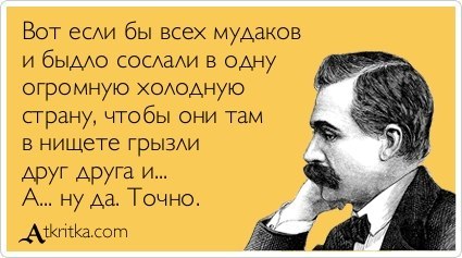 Нам всем очень повезло. Если бы еще лет 10 назад кто-нибудь заикнулся бы о том, что Президент переодевается в журавля, петрушка признана наркотиком, а 'Ну погоди!' запрещено цензурой, его бы сразу же отправили в дурдом. У армянского радио спросили, отчего расходятся данные по численности митингующих у полиции и оппозиции. Армянское радио ответило, что всö дело в формулах измерения. Полиция считает количество ног и делит на четыре - как при пересчöте баранов. А оппозиция считает массу толпы и делит еö на средний вес хомячка. Николай Валуев охотился на медведя с рогатиной, причöм рогатину медведю с целью хоть немного уравнять шансы сторон, Николай выдал сам...