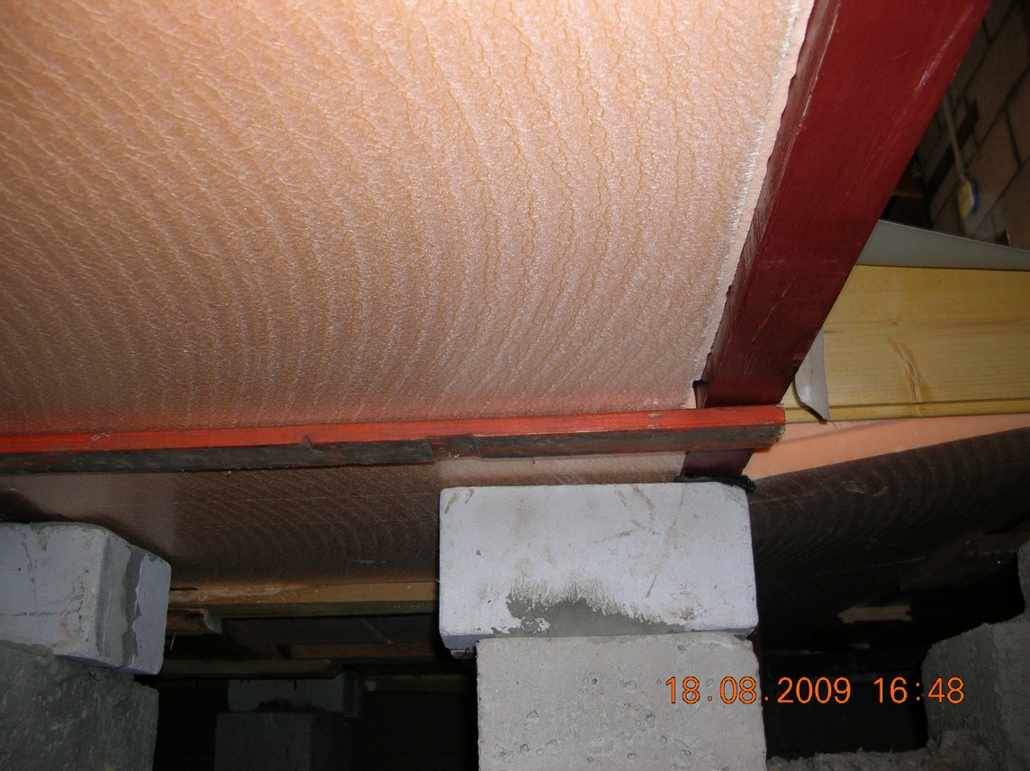 вот, как и обещал, фотки. там,примерно всё ясно, вид снизу. розовое это пенополиуретан, пропенены швы сверху, для герметичности. поверх настелена Урса.