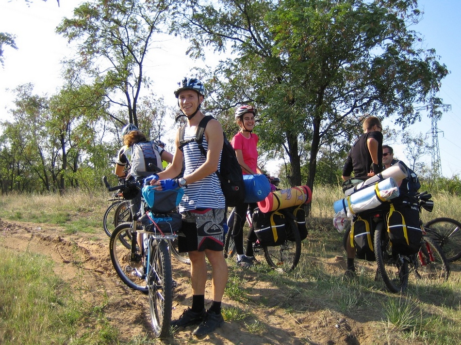 Так, как и обещал ,добавлю свои пять копчей… Денёк задался славненький, солнечный и жизнерадостный. Добравшись (лихо вкручивая от боязни опоздать на сиё мероприятие) до станции Ельшанка, не долго ждал электричку. Залезая в первый вагон был удивлён, что группа велосипедистов расположилась прямо за кабиной машиниста, демонстративно выложив свои байки в первом «купе». Порто 32, Maja, Димок7, Игорь находясь в прекрасном расположении духа разглядывали карту, видимо пытаясь понять, что там изображено . Я очень был рад встрече и тому, что поездка состоится. В Кировском подсел dimazik, оказавшийся лично мне близким по духу и темпераменту, что в поездке немаловажно. Обсудив с Димок7 все прелести его достойнейшего велосипеда, я услышал еле слышную команду от Порто 32 о нашем срочном «катапультировании», после чего мы ещё минут 15 проторчали в тамбуре набитым велосипедами. Подумав, что это просто накладка вызванная волнением организатора, я не обратил сначала особого внимания на эту ненужную суету с великами, но немного позже понял – «кризис системный». Angel of low flight предусмотрительно присоеденился к нам в Кировском районе возле военной части. Повесив рюкзаки, кто на спину, а кто на багажник мы весело тронули. Каково же было радостно штурмовать почти километровый и почти вертикальный подъём без разминки вам и не передать уважаемые читатели, плюс песочек, тоже ласково заявлял о себе, нежно топя колёса велов в себе. Так что, первые километра два пришлось тащить велосипед и всё остальное на себе. Нагрузка была очень резкая и несвоевременная. Считаю это очередным просчётом организатора – нужно было хотяб перед выездом огласить ближайшие препятствия и трудности ждущие нас и в этом случае провести разминку. Ноги уже немного стали «гудеть», однако юмор и смелость не давали повода к унынию и мы резво повернули вправо, ожидая укатанной грунтовой дороги – но, к нашему лёгкому ужасу там был мягкий и «накатанный» песочек, где колёса «горников» тонули на всю покрышку. Потешило вскользь брошенное Порто 32 : «Не было тут песка, была нормальная дорога…». Но, вскоре появилась достойная укатанная глиняная грунтовка, по которой мы, сопротивляясь шквальному северо-восточному ветру, катили, забыв обо всём и наслаждаясь окружающим. На одном из небольших спусков dimazik не справившись с управлением, влетел в противопожарный ров, почти перелетев через руль. К нашему удивлению повреждений он не получил никаких. Хотелось бы выразить отдельную благодарность Игорю за его старания в фотографировании всего происходящего, он умудрялся даже уходить вперёд и фотографировать нас с фронта. Кстати с нами ещё были Андрей и Вероника - брат с сестрой, велолюбители. Они держались особнячком, хотя в разговор со мной вступали охотно и доброжелательно. Чего не скажешь о Порто 32, на любой свой вопрос я получал неясное бурчание под нос, чувствовалось какое-то напряжение в общении с ним, он мне показался гиперзастенчивым и закомплексованным, хотя он очень старался и пытался выглядеть организатором вырываясь всё время вперёд на своём веле из общего строя. Не хватало так же ясного плана «Что?Где?Когда?», он видимо рождался по ходу нашего движения. Побывав на господствующих высотах Кировского района, очень захотелось «заморить червячка», что было нами и сделано в лесопосадке. После обеда, нас жда