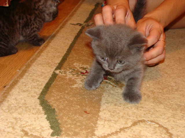 вставшие уши - это полбеды. ну разочаруется покупатель, что кот перестал быть вислоухим - дай бог не избавится от него из-за этого.. успеет привязаться и полюбить... главное, чтобы с позвоночником к годовалому возрасту у таких вот миксов (потомки разнопородного скрещивания так называются) проблем не возникло - а именно в этом опасность таких скрещиваний. вот из-за такого и получаются не ручные, агрессивные вислоухи-миксы...больно им потому что. пока маленькие - всё шоколадно, ничего не болит...а с подрастанием возникает беда... позвонки сростись могут в любом месте позвоночника. почему? да потому, что британцы имеют тяжёлый костяк, с укороченными, плотно стоящими позвонками. а ген вислоухости - является полулетальным в силу того, что помимо самой вислоухости тянет за собой вот такую фигню - сращение позвонков при тяжёлом плотном костяке. чем тяжелее костяк - тем больше риска, что это произойдёт (у кого раньше, у кого позже). поэтому шотландец - это не британ. скоттиш должен иметь более лёгкий и более растянутый костяк и гораздо меньшую массу тела, чем британ. иначе - беда... поэтому и запрещено скрещивать эти две разные породы - чтобы не плодить потенциальных страдальцев. без наездов к продавцу. котята очаровательны. только предупреждайте покупателей, что родители принадлежат к разным породам, скрещивание которых запрещено из-за большой опасности проявления в более старшем возрасте описаных выше проблем. покупатель должен осознавать, какое животное он приобретает и какае сложности могут с ним возникнуть. к тому же рановато им от мамки переезжать....