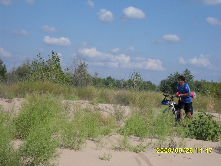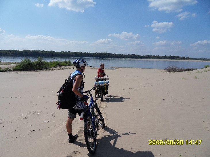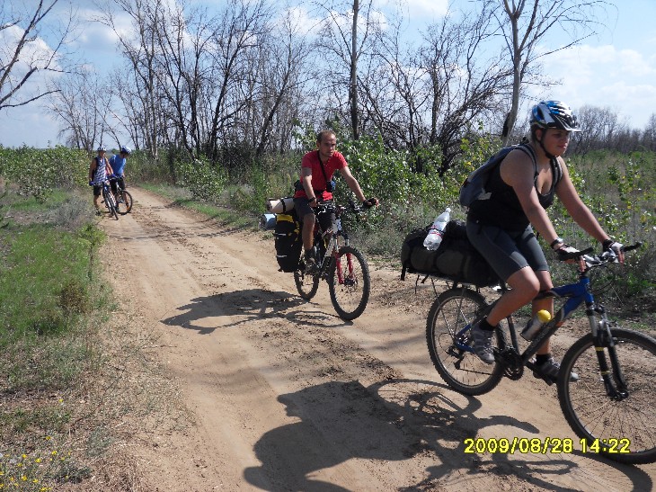 Скучно - маршрут не живописный. Можно было свернуть в Кировском и на пароме переехать на остров Сарпинский, где до 29 проходил форум Волга-2009 - 28 было закрытие, вот Maja порадовалась бы, там костер, куча палаток, Гребень, а потом уехать и ночевать на берегу Волги, поближе к Центру.