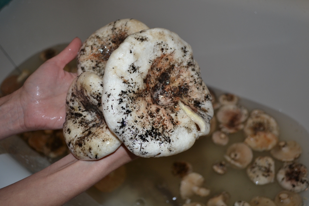 Тоже отмечусь, утром в пойме за 2 часа собрали отличных груздей и один белый нашли Так выглядят чищенные Наиболее крупные представители половину уже почистили, позже оказалась полное 12 литровое ведро грибов