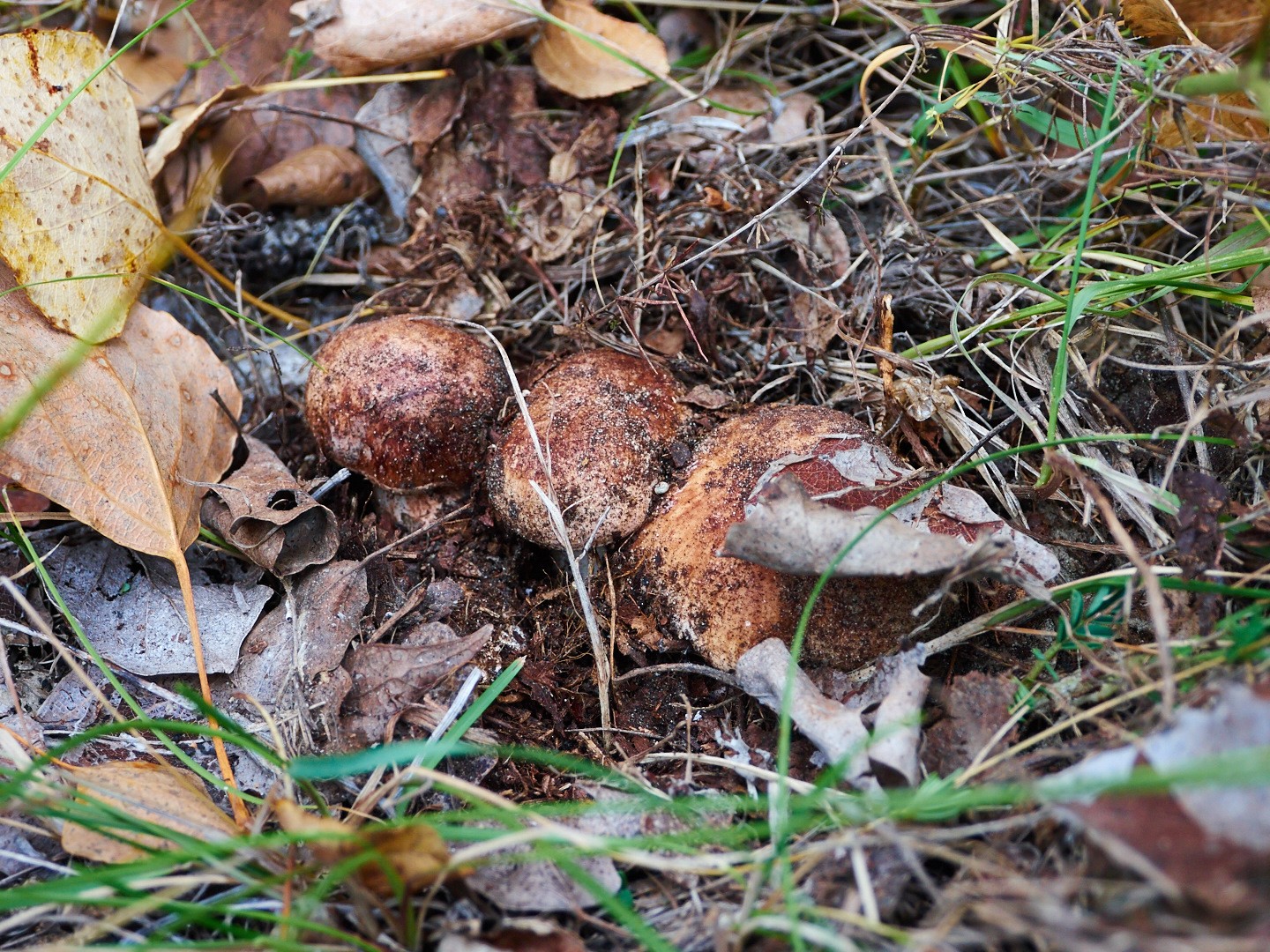 Что-то как-то грустно. Земля сухая. Нашел один печеночник и 13 шампиньонов мелких. И 12 из них - червивые на 99%