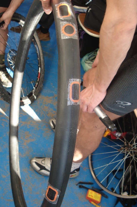 Скорее всего вы не уничтожили колючки засевшие с другой стороны (внутренней) покрышки и они продолжают дырявить камеру. У мну в прошлом году такое ужо было -четыре раза клеил покрыху - не пойму - дырки на новых местах - а никуда не ездил . Оказывается нужно после прокола колючкой пропальпировать внутреннюю поверхность покрышки на наличие острых концов колючек - при наличии удалить. Этот хороший совет мне дал Володя - веломаньяк со стажем, который катает молодожёнов на велорикше на Аллее Героев.