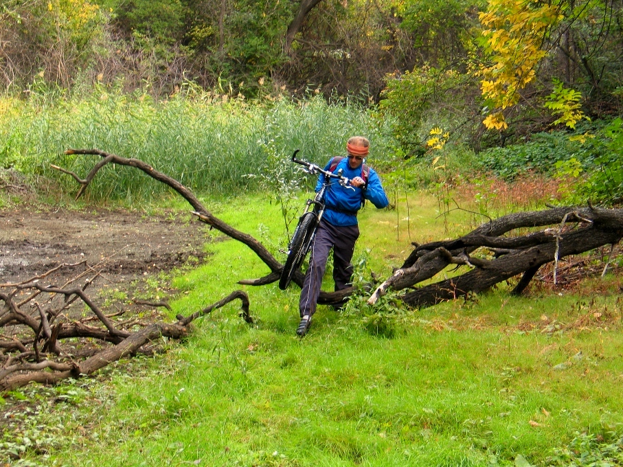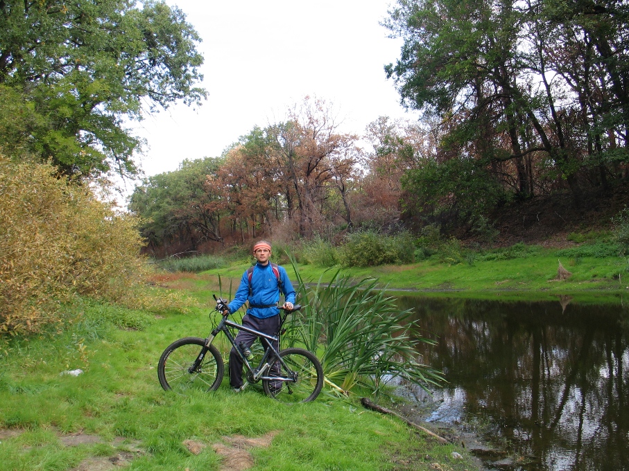 Небольшая зарисовка о незапланированном походе ...Утром, все кто собирался ехать, собрались на пароме. Собравшихся было трое:Сергдж, dimazik и я (PSV). Думалось, что это последняя поездка на пароме-ведь в понедельник должны ОТКРЫТЬ МОСТ и паромная переправа канет в лету. Переправившись на левый берег, мы поехали по Краснослободску в сторону ер. Судомойка. У "Пятерочки" наша группа разделилась: dimazik поспешил по своим делам, а мы с Сергджем по очереди "нырнули" в магазин закупиться провизией. ... После магазина мы направились в п.Сахарный. Так как с открытием моста основной грунтовый путь в пойму теперь будет лежать через этот поселок, мы решили получше разведать кратчайшие пути и просто поездить по новым местам в "ближней" пойме. Для этого выбирали дороги, по которым мы еще не ездили. GPS с утра отказался работать, поехали "по солнцу", благо оно было. Сразу за поселком хорошо накатанная дорога идет сначала по большим полянам, потом по лесу. Здесь мы проезжали в мае этого года, в разгар половодья, переходя иногда вброд заполнившиеся водой низины. а сейчас здесь сухо. Через 3,5 км выехали к дачам, затем пересекли грейдер Закутский- Тумак и двинулись дальше. Через несколько км выбранная дорога привела нас на берег небольшого озерка и ...закончилась. Озеро было очень красиво, мы сфотографировались и отправились обратно. Через несколько десятком метров в сторону уходила еще одна дорожка, которая тоже скоро закончилась.Перед нами был сухая ложбина, по которой можно было все же ехать. Правда, на нашем пути встречались иногда препятствия, которые мы с успехом преодолевали. Выйдя снова на дорогу, мы покатили по изумительному участку леса со стройными рядами тополей, небольшими полянками и отличной дорогой. Скорость наша, к моему удивлению, была совсем невысокой-15-17 км/ч. Мы ехали не спеша, разговаривали, наслаждались великолепием осени и отличной погодой. Через некоторое время лес закончился и мы оказались на большом лугу с пасущимися на нем коровами. Большинство из них лежало, нежась в лучах "нежаркого" солнца. Мы остановились и немного понаблюдали за ними. А они - за нами. Вообще, в этой поездке мы постоянно встречали домашних животных- то коров на лугах, то ленивых овец, даже не встающих при нашем приближении, то большую группу(шт. 8-10) щенков, неизвестно как оказавшихся на берегу заросшего камышом ерика. Да еще в приличном удалении от населенного пункта. На отдельных озерах видели водоплавающих: лысух, крякв, цаплей. В лесу часто попадались грибники и охотники. На обед мы остановились на берегу живописного ерика Свинуха. Я пробовал половить хищника, но без результата. Мелковато, а может и вода еще теплая. Обратно, в сторону дома, мы тронулись необычайно рано-в половине четвертого и через два часа были уже на мосту через Волгу.. Здесь нас охрана направила на пешеходную дорожку.Надеюсь в последний раз. Ехать по ней крайне неудобно.Особенно, если на ней находятся пешеходы. Итого, проехали за день грунтами 90 км. Немного устал, но уже дома чувствовал себя хорошо. Впечатления от поездки самые наилучшие: хорошая компания, красивая осенняя природа, солнечная погода, великолепная дорога (гораздо лучше, чем летом). Много запоминающихся моментов. Ну, что же, значит повезло. Надеюсь, что не в последний раз .