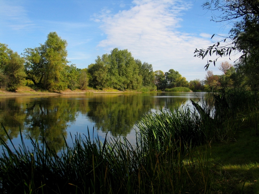Замечательно прокатились благодаря раннему сбору в 8 утра, хотя я как обычно опаздывал и тяжко вкручивал на паром, кляня свою нерасторопность, и неуместный встречный ветер. Только после оплаты проезда вспомнил что через мост пускают, ну да ладно попрощались с паромом. На середине переправы я окончательно остыл от гонки и начал от прохлады просыпаться Небеса не спешили умываться от облачности, потому Ярило жарило тучи а на землю тепло не попадало, но нам ли быть в печали ? Благодаря алюминевым дружищам прохладу ощущали только уши и то в начале, пока были на асфальте... . В окружении деревьев и ериков, вперемежку с коровами, щенками, баранами, грибниками, рыбаками,утками,цаплями - километры наматывались только на велокомпьютер, минуя внимание И некоторый осадок появился на картах......, картах памяти фотоаппарата