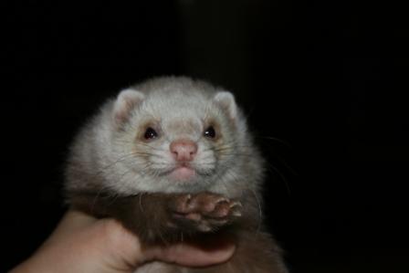 Утром в понедельник встретили во дворе дома белого , пушистого ручного зверька, похожего на хорьков с фотографий выше. Просился в руки, не боялся ни людей , ни машин, взял кусочек колбасы, но есть не стал. Сделали вывод, что зверек или потерян или выброшен. Зверя оставили там ,где нашли: ЦПКиО, Глазкова, дома 2-4, перед поворотом на Европу Сити Молл.