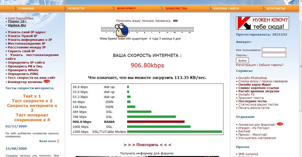 Брешит этот сайт. У меня показало ВАША СКОРОСТЬ ИНТЕРНЕТА : 41.53 Mbps Что означает, что вы можете загрузить 5.19 MB/sec. Это никак не может соответствовать действительности.
