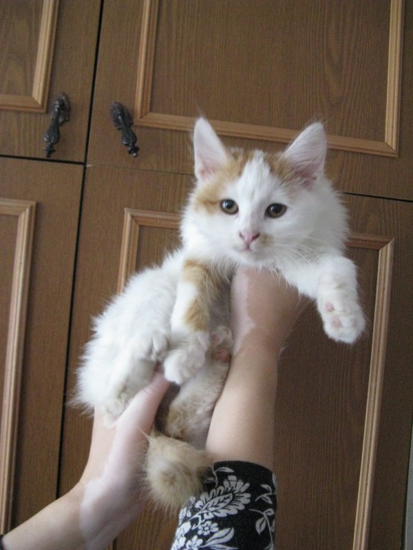 Очаровательный, умный, ласковый котенок от трехцветной кошки очень хочет принести счастье своему хозяину! Пол: мужской. Особые приметы: белый, с рыжим хвостом, рыжими ушками и рыжей мушкой на левой щечке. Пушистый, но шерсть мягкая и гладкая, не набитая. Характер: легкий, веселый. Навыки и умения: ест самостоятельно, к лотку приучен. Увлечения: мурлыкать песенки хозяину (когда ему гладят брюшко или в благодарность за еду), играть с мячиком, спать на коленях у хозяев. Звоните по тел.: 8-903-327-25-21 и пушистый талисман - ВАШ!