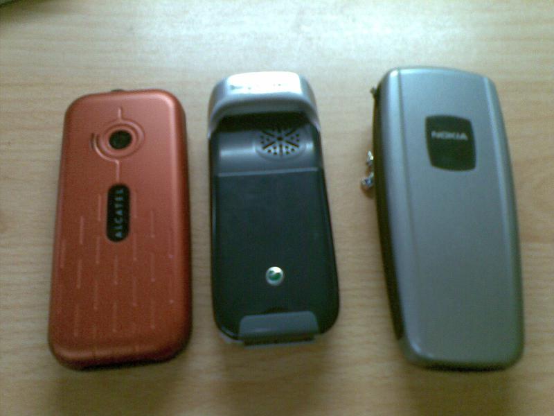 Alcatel i-650 (полный комплект) IMEI 353126020029605 http://www.salonsvyazi.ru/Alcatel_I650_One_Touch_Black-Chrom.htm Цена: 1500 руб. Soni Ericsson J300 (ориг з/у, гарнитура, кабель usb) IMEI 35619500-743811-0-22 http://mobiguru.ru/phones/sonyericsson/sonyericsson_j300i.html Цена: 600 руб. Nokia 2600 (ориг з/у) IMEI 353774000614944 http://mobiguru.ru/phones/nokia/nokia_2600.html Цена: 500 руб. Возможен обмен всего выше перечисленного на телефон повеселее + небольшая доплата.