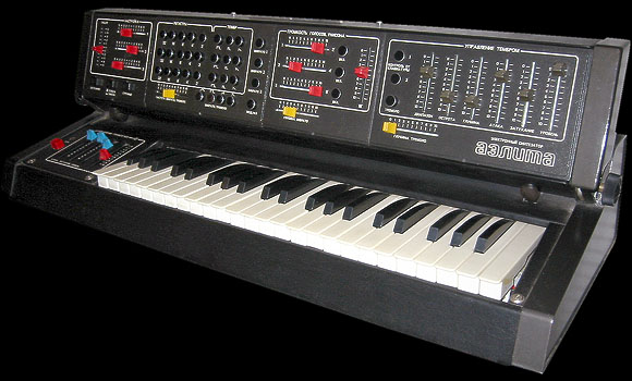 Бабруйский Диверсант, оф топ - в деревянном чемодане с застежками добавлено через 3 минуты Электронный музыкальный синтезатор "Аэлита" (Муромский завод РИП) Клавишный трехголосный электронный синтезатор "Аэлита" - современный музыкальный инструмент. Музыкальное произведение, исполненное на "Аэлите", может прозвучать по-новому, если исполнитель использует разнообразные звуковые эффекты: трехголосный унисон, тембровое глиссандо, частотное вибрато, тембровое тремоло, затухание, атаку, стрингс (струнная группа). Характер звучания можно менять прямо во время исполнения, также как и тембр: достаточно поворота ручки или прикосновения к кнопкам управления. При исполнении музыкального произведения на "Аэлите" можно сделать запись на магнитофон, прослушать "игру на исполнителя" через головные телефоны. Инструмент можно использовать и в составе эстрадных ансамблей. Элегантный корпус инструмента из алюминиевого сплава, оклеенного искусственной кожей, при перемещении инструмента надежно защищен легким и прочным футляром.