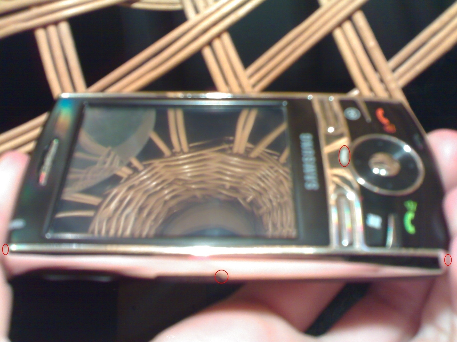 Извиняюсь канеш за эту порнографию, цифровика нет. Красным я отметил места где фольга подстерлась. Защитное стекло камеры как новое.