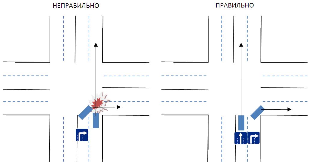 Ещё разок: учите ПДД: Ну а если оказался в левом ряду и знак требует поворота направо, то: Выполните эти правила и не будет картинки 1.
