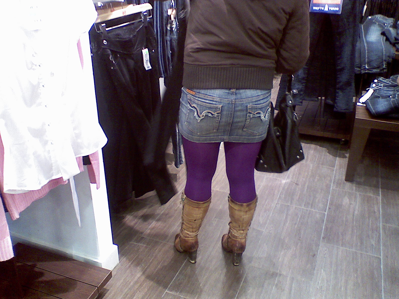 Гость форума, может, это не легенцы (классная интертрепация))), а колготкИ? И снято сегодня - девушка одета по погоде, ничего лишнего. Была с подружкой в нереальных ботфортах (Портос бы удавился на собственной перевязи), но обе в объектив телефона на поместились.