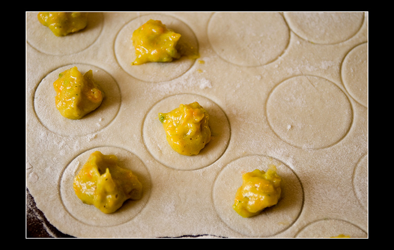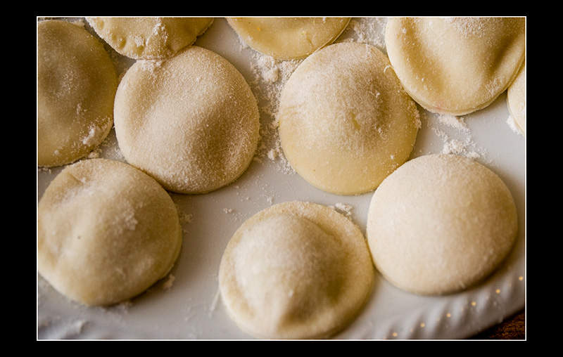 Рецепт звучит вкусно, но не совсем понятно, при чём тут равиоли. Равиоли -- это что-то примерно вот в таком вот духе: http://www.forum-volgograd.ru/attachment.php?attachmentid=52787&d=1262650306 http://www.forum-volgograd.ru/attachment.php?attachmentid=52785&d=1262650217 Кстати, тоже вполне необычно, даже для итальянцев. А начинить можно чем угодно...
