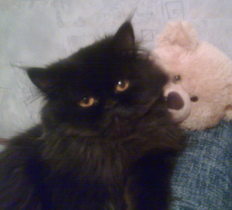 с характером ... он очень покладистый и ласковый, если уделять ему внимание (это он любит). С появлением ребенка на него времени не хватает катастрафически, на что он протестует громким мявканьем и вылавливанием ног из-за угла . Ребенок плохо спит и "мявк" в тиши становится роковым и другие мелочи. Перс требует регулярного ухода, стыдно, но не справляемся.