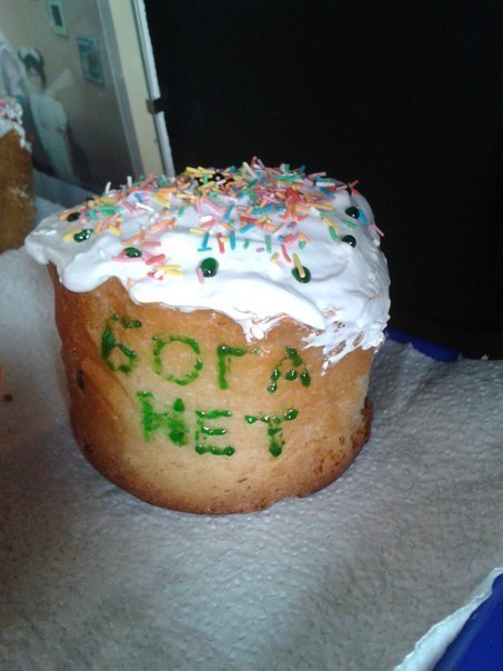 Лишь жертва ЕГЭ или научного атеизма может так безапелляционно заявлять то, что изображено на куличе.