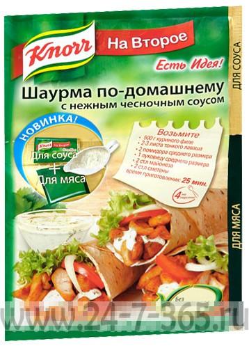 Делали шаверму дома на прошлых выходных. Питу купил в гипере. Овощи там же, и курицу. Кнорр сделал приправу - "Шаурма по домашнему". Содержимое пакета просто нужной высыпать в сметану и майонез + блендер. Соус - не отличить, один в один как в шавермной.