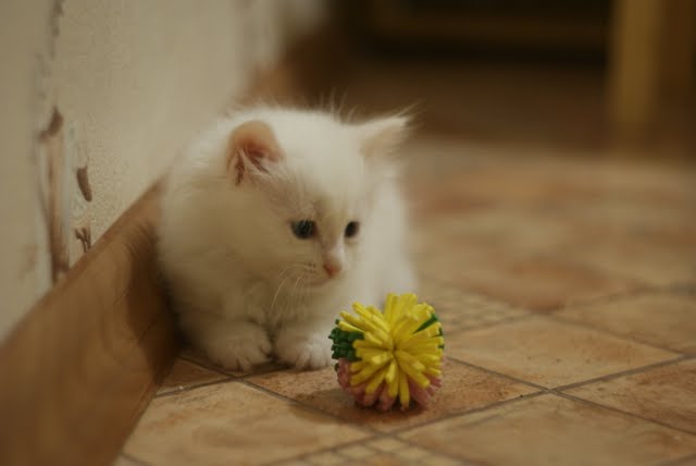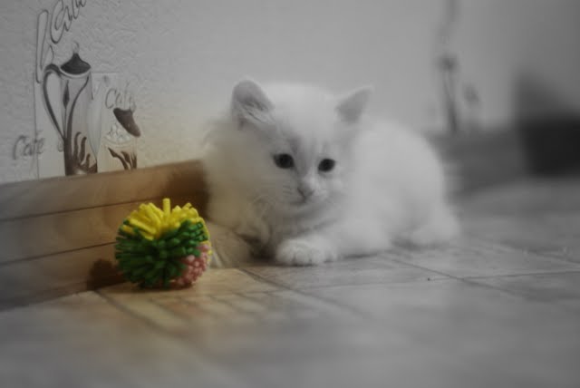 Лорана, мальчик оказался девочкой хозяина у нее пока нет а белая кошка (у нее уже есть хозяин, который заберет ее чуть позже) вчера насмешила: ходила по комнате, уткнувшись носом в пластиковую 5литровую бутыль, толкая ее перед собой. полчаса примерно так ее гоняла