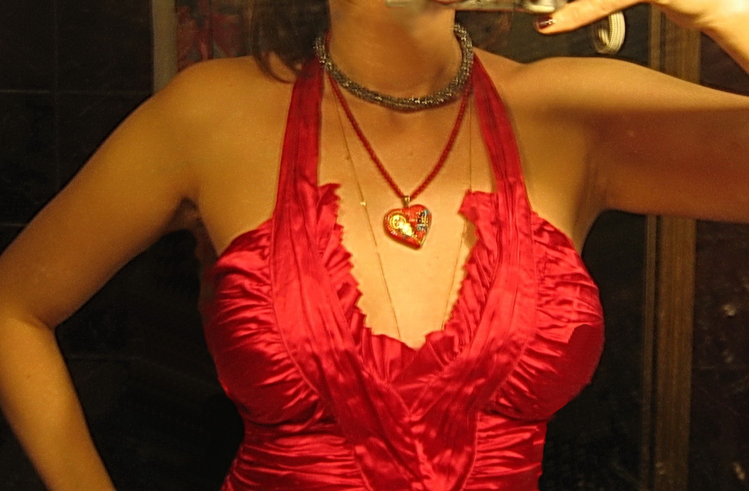 Погибель Фореве, Я не про краснуху. а про хорошую бижутерию и поделки из "домоводства". А сердце напоминает детские поделки из соленого теста. Это из него?))) добавлено через 2 минуты Погибель Фореве,А бусы на фото в красном топе - это вы сами смастерили из металлической мочалки для мытья посуды? Оригинально)))