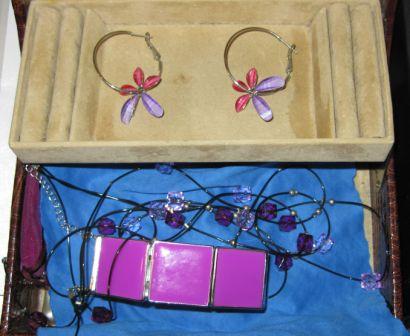 а вот мое боХатство 1-2 : сережки, из них очень редко ношу голубые 3. Браслет, есть такие же длинные и оочень тяжелые бусы, ношу браслет только 4. Бусы из ниток и дерева, к ним есть такой же браслет. Привезли в подарок из поездки на Бали, это рукоделие местных жителей 5. Запонки, лежат без дела уже много много лет, выкинуть жалко