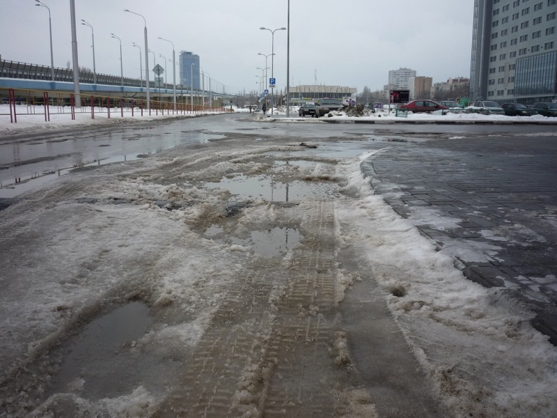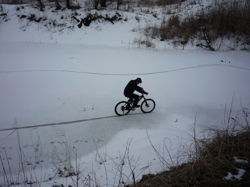 Седьмого марта сего года была очень подходящая погода. Сухой асфальт, небольшой минус, солнечно. Был ветерок, но терпимый. Лед на Гнилом был чистый, без снега. Но уж больно бугристый. Без шипов по нему ездить не получалось. Я проехал метров 50, за это время раз десять вел пытался выскочить из-под меня вбок, и на этом я сдался. Однако на хорошей шиповке покататься вполне можно было.