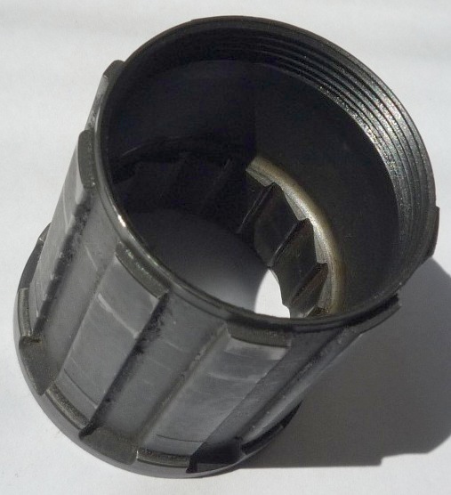 Снял я ступицу звездочек - и, с одной стороны, восхитился, а с другой - сказал: "Н-дааааа..." Восхитила меня красота инженерного решения, а озадачил общий вид узла. Шарики явно квадратные, вместо смазки - что-то вроде мокрой грязи, следы ржавчины на дорожках... Что ж, закономерно. Колеса у прежнего хозяина хранились на балконе, а весна была дождливая, да и осень-зима "помогли". При первой разборке подшипников втулки, они выглядели примерно так же. На приложенных фотографиях желающие могут познакомиться с деталями трещотки Formula. Я проанализирую эту трещотку, сравнивая ее с устройством трещотки втулок ХВЗ. Для начала, здесь - 3 собачки, против двух ХВЗ-шных, и ширина каждой из трех в полтора раза больше харьковских. Собачки тут массивней, толще и не имеют тонких рабочих граней, которые так быстро выкрашиваются на втулках ХВЗ. Далее - пружинки. У ХВЗ каждая собачка поднимается собственной пружинкой, здесь же все 3 собачки работают с единой кольцевой пружиной. Тут есть плюсы и минусы. То, что каждая собачка имеет независимую пружинку, хорошо - если лопнет пружинка одной собачки, собачка заляжет, но доехать можно будет на второй. Здесь же, если лопнет единственная пружина, залягут все 3 собачки, и ехать станет невозможно. Но моя кольцевая пружина, которая прошла до меня, думается, не меньше 3-4 тысяч, да у меня больше тысячи, следов износа не имеет, а изгиб ее при работе в десятки раз меньше, чем у пружинки на втулке ХВЗ. Так что вероятность излома кольцевой пружины я считаю незначительной. Зато ХВЗ-шным собачкам ничто не мешает выскочить из изношенных гнезд и залечь - такой случай я описывал в рассказе "Баллада о новогодних рукавицах, или Анатомия и физиология собачек". Собачки втулки Formula выскочить не могут в принципе, т. к. их охватывает и прижимает сверху кольцевая пружина, лежащая в пазу собачек. А гнездо собачки на этой втулке износиться не может, потому что гнезда тут нет. Есть упорная площадка, куда упирается затыльная часть собачки, но даже если там и будет износ - он ничего не изменит и не ухудшит. Так что считаю конструкцию трещотки Formula хорошо продуманной, красивой и надежной - более надежной, чем у трещотки ХВЗ. Я понимаю, что на втулках ХВЗ сейчас очень мало кто ездит, но ни с чем другим сравнивать не могу, т. к. с другими импортными конструкциями я не знаком. Итак, трещотка разобрана. Я вычистил старую смазку, заложил свежую. Старые шарики диаметром 3.2 мм, конечно, не годятся никуда, кроме как в ведро. За неимением 3.2, я заменил их шариками 3-мм диаметра, при этом появился люфт 0.4 мм. Зажимаются подшипники ступицы звездочек той самой обоймой с левой резьбой, что я откручивал бородком. Под обоймой лежат регулировочные шайбы, одна - 0.8 мм, и две - по 0.25 мм. Выбросив обе тонких шайбы, я закрутил обойму и увидел, что подшипники зажаты. Вернул одну тонкую, и получил избыточный люфт. Для правильной настройки мне нужна была бы шайба толщиной 0.1 мм, но такой у меня не оказалось. Поскольку чуть-чуть перетянутый подшипник живет гораздо меньше, чем подшипник с избыточным люфтом, я оставил так. Но если мне где-то попадется стальная фольга 0.1 мм толщиной, я вырежу из нее шайбу и поставлю вместо шайбы 0.25 мм. Собрал, поставил - и впервые услышал, что кассета стала вращаться в своих подшипниках почти бесшумно - так, как надо. А дальше... дальше будем посмотреть.
