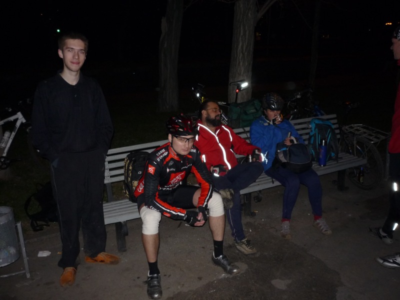Мне понравился наш вчерашний рейд. Микропокатушка, включившая некоторые интересные элементы. У меня вчера с учётом дневного "вонюче-городского" пробега вышло чуть больше 60-ти километров, преимущественно в бодром темпе. По грунтовке катили шустренько и с удовольствием. А как замечательно было в темноте, при свете фонарей, да на свежем воздухе! Многие понахватали колючек в колёса, были и серьёзные поломки. Я, даже идя пешком, умудрился влезть своим велом в немногие лужи, хорошенько угваздаться и песочка нахватал в тапки и сам прокололся. А потом были и закономерные посиделки на набережной, домой я приехал что-то около часа, подуставший, голодный и довольный. По моему мнению, тренировочная покатушка прошла на весьма позитивной волне, я остался доволен