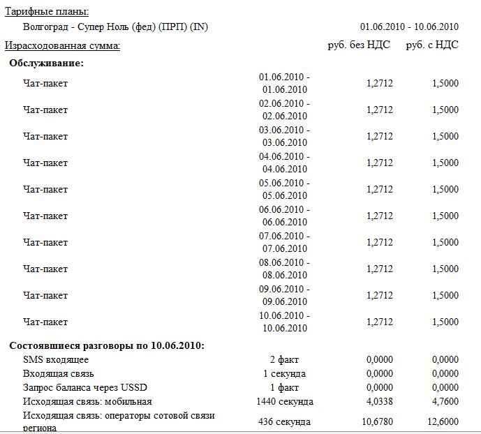 в продолжение темы. т.к. номером пользуюсь очень мало...сегодня залез в интернет помощник взял детализацию за июнь. смотрю потом открываю помощник. эта гребанная услуга чат стоит ноль рублей. тогда какого вы с меня снимаете ? вопросы . 1. почему в интернет помощнике ни слова о том что капает абонентская плата ?? разговоры о том что сама услуга бесплатна можете не рассказывать. 2. почему в интернет помощнике нет возможности ее отключить ? 3. я непросил ее активировать при подключени... почему не выключили ее в декабре когда она стала платной. я думаю что я не одинок так что народ посмотрите и у себя. 4. кто компенсирует мне мои 300 руб )))) проверить очень легко... я этой услугой не пользовался вообще... и знать бы не знал о ее существовании.. пока деньги не стали просто бесследно уходить... учитывая то что я говорю по данному номеру очень мало. детализация прошлого месяца выше на парочку постов.