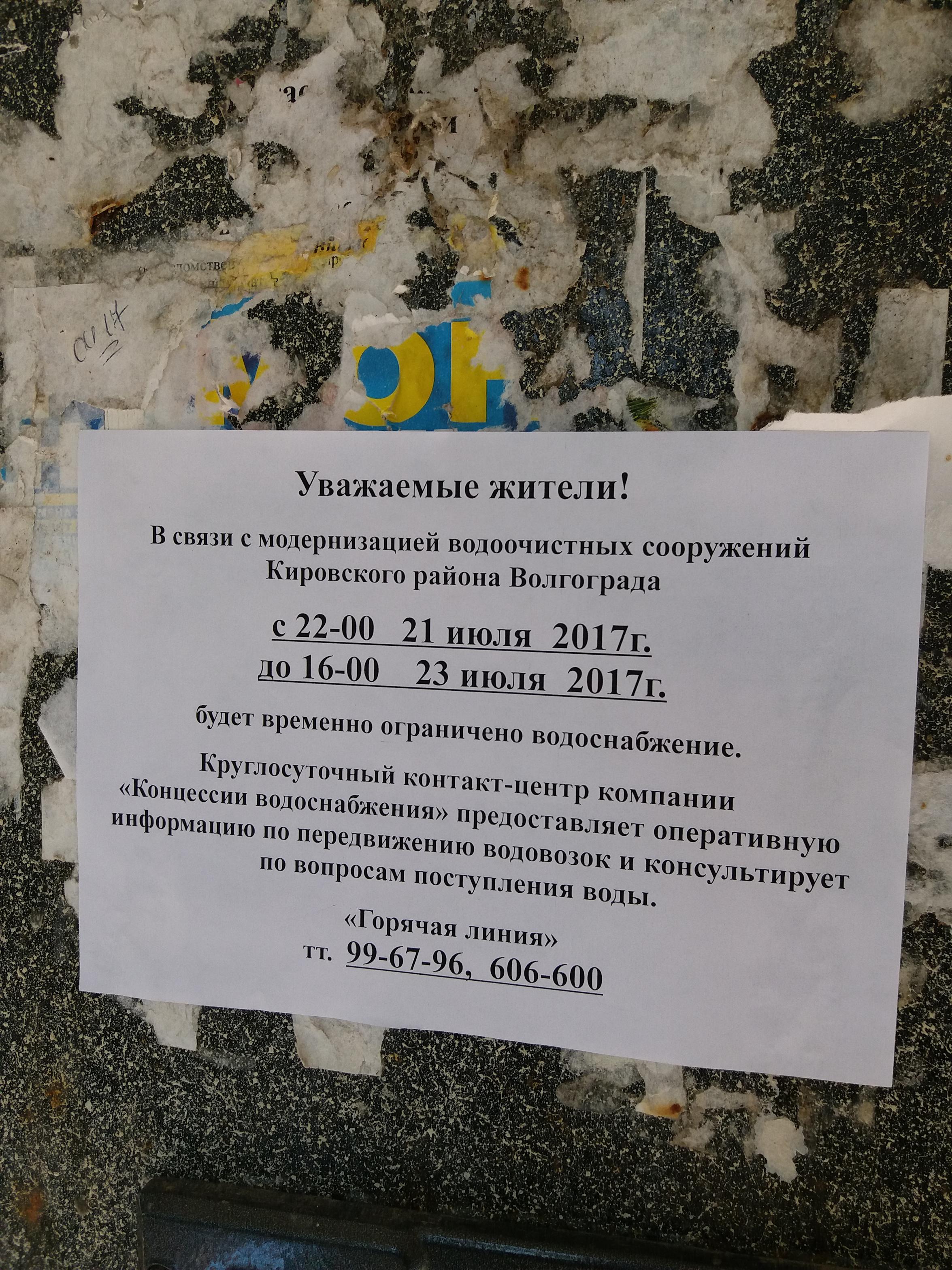 Дали воду. ---------- Сообщение добавлено 09.07.2017 08:11 ---------- Лучше бы они туда объявление об отключении воды вовремя вывесили.
