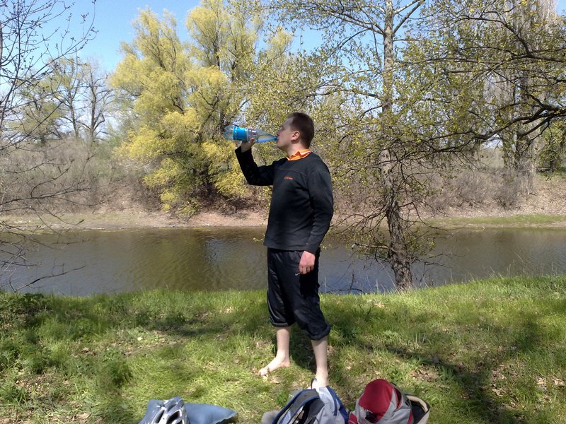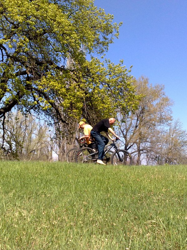 Накануне покатушки добро было получено от многих. Утром в субботу стало ясно, что скорее всего я и michael2000 едем сами, хотя в центре около 10 часов к нам должен присоединиться колоритный Олег. Многие отказались от поездок по разнообразным причинам, но отмазками это назвать не могу: люди уже достаточно хорошо знакомые и проверенные. Начало поездки растянулось надолго. Выехали мы с Мишей в 9 утра, решили двинуть на электричку, чтоб поменьше дышать особенно свежим утренним выхлопом и сэкономить чуток сил для поймы. Докрутили до Обувной – и в элку. На пригородном вокзале обнаружили, что снами в одном поезде ехала милая девушка на синеньком GT. Глядя на ее потерянный вид перед ступеньками вокзала, Миша, подъехав первым, проявил джентльменские качества: предложил занести ее велик внутрь здания и переправить его через турникеты. Только от участия в совместном освоении грунтов поймы она все равно впоследствии отказалась: уж больно озорной вид был у Мишки. Олега задерживали на работе. Ждать было скучно, и с целью развлечения мы искатали весь центр, побывали на центральной набережной, съездили к еще закрытому «Байку», постояли возле «Сплава», позвонили PSV, у которого поломалась вилка … Потом закупились в «МАН’е» . Устав ждать Олега в городе, отправились на мост. Вид был потрясающий: все залито: ЛЭП, деревья – все словно растет из воды. На выезде из Слободы около магазинчика еще часа полтора ждали догоняющего Олега: так долго его держали эксплуататоры-капиталисты на работе. За это время имели возможность полюбоваться на стремящийся во всей красе на отдых народ… А вот и Олег! С десяток км асфальта (все это Миша сопровождал нелицеприятными комментариями: настолько уже надоела ухабистая пыльная лента с кучей автомобилей!) – и мы на грунте. Ласковое солнце, легкий весенний ветер, накатанный грейдер, щебет птичек, зелень трав и листвы крон… Лепота. Но все наши опасения по поводу последствий постройки моста оправдались: яблоку упасть негде, везде отдыхающие на автомобилях, кто с палатками, кто с мангалами, но почти все - с шумом и такой нелепой в этих местах музыкой… Печально, но факт: по выходным найти хорошее место, приехав даже раньше других, еще не будет означать отсутствие неспокойных соседей. В поисках лучшей доли мы совершенно незаметно оказались в каком-то селе. Ответ на вопрос пролетавшей мимо на «Каме» девушке нас немного обескуражил: Репино. Помню, еще в прошлом году расстояние до него казалось таким далеким… Выехали мы за Репино, искали-искали… И наконец нашли тихую поляну без соседства на берегу ерика. А далее – вполне обычно: отдых у костра, обед, беседы, шутки, немного фото. Отдохнув, решили поискать в окрестностях еще места на будущее, нашли недалеко расположенные от села, но чистые и тихие укромные уголки. А после поехали домой, пытаясь запомнить, как же мы попали на грейдер. И вот что забавно: каждый раз история повторяется, ибо все пойменные дорожки словно близнецы, мы пытаемся запомнить путь и раз за разом ищем его заново… Топографический кретинизм? Ехали, мечтали о GPS. На обратном пути Миша 2 раза прокололся: в Репино заднее, в конце моста - переднее колесо. Оба раза выручили запаски моя и Олега, остановки были всего по 10 минут. Еще из расстройств: авто на грейдере столько, что мы просто устали уступать им дорогу и потом глотать поднятую и