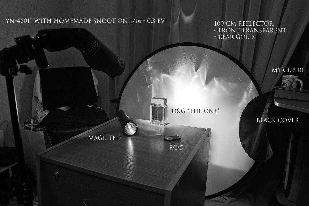 Canon 450D + 70-200 F4 14 sec at F/9; ISO 100; 200mm YN-460II через слепленный из коврика для мыши снут(или как его правильно?) на 1/16 - 0.3EV YN-460II в отражателе позади, между прозрачным и золотым слоем. Линии проводил Маглайтом. После того как провёл поджигал через РФ602 вспышки.) Ну и спасибо пультику РС-5 за реальное ускорение процесса ))