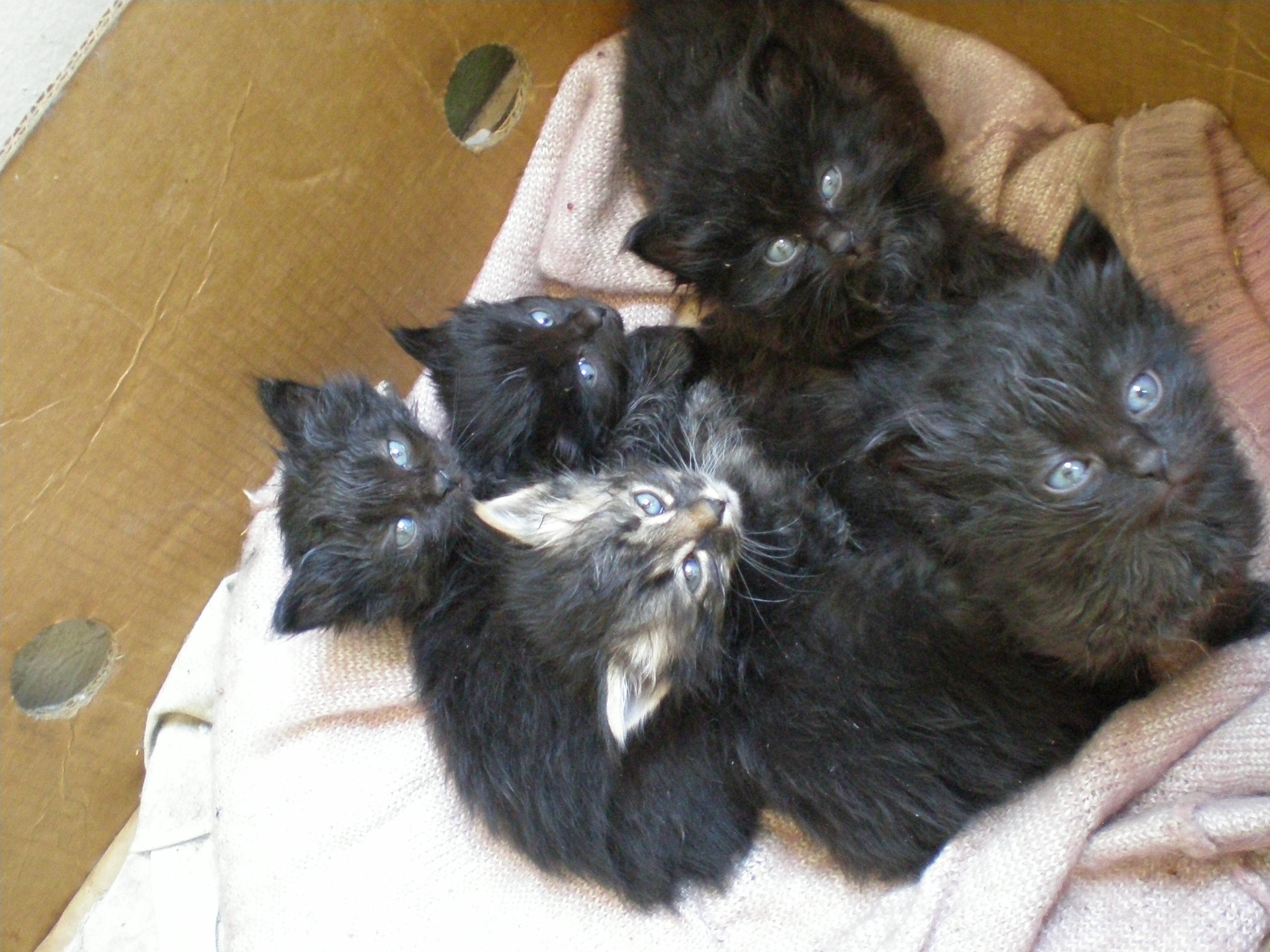Так уж сложилось, что в возрасте месяца, 5 замечательных котяток остались без мамки (разодрали собаки на пороге своего жилища). Мама-кошка была пушистой кипельно-чорной кошкой, умной, т.к. жила в офисе фирмы и оч. ласковой! Котята, судя по всему, в маму(4 кошечки и 1 котик), пьют молоко и пытаюца жевать кожицу от курицы. Умываться пока не научились, потому чумазые такие. Кому интересно, звоните в будни по тел. 919-545-24-83, Лена.(в рай. Тракторн. рынка)