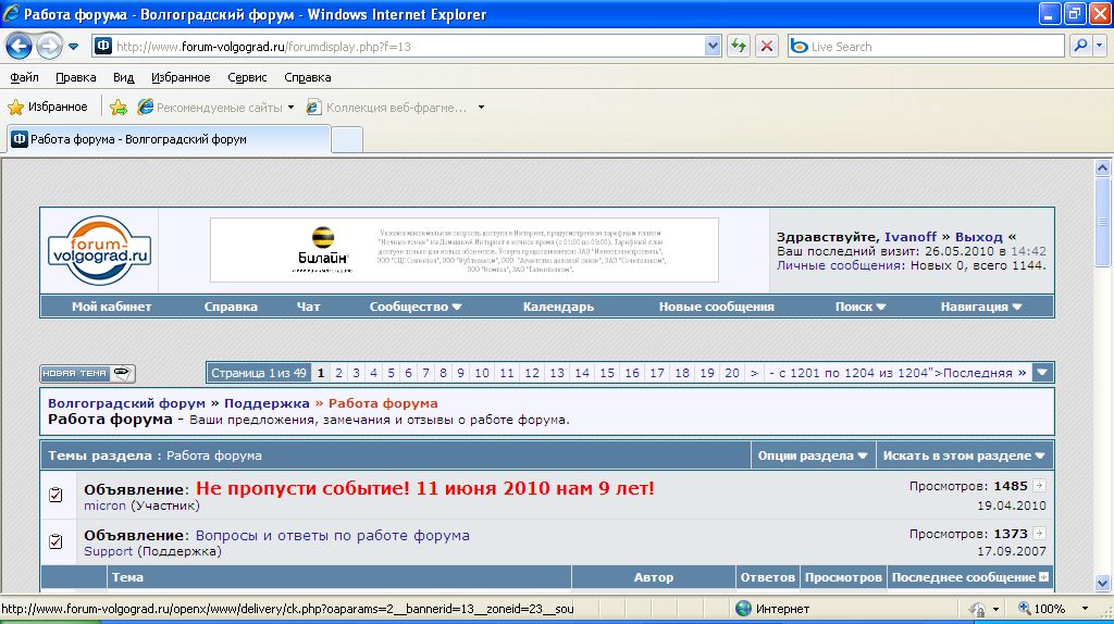 В Опере висит баннер встречи, который закрывает мне меню поиска и сообщества, когда я их нажимаю. Нельзя ли его перенести на задний план? Кстати в IE у меня нет этого баннера)
