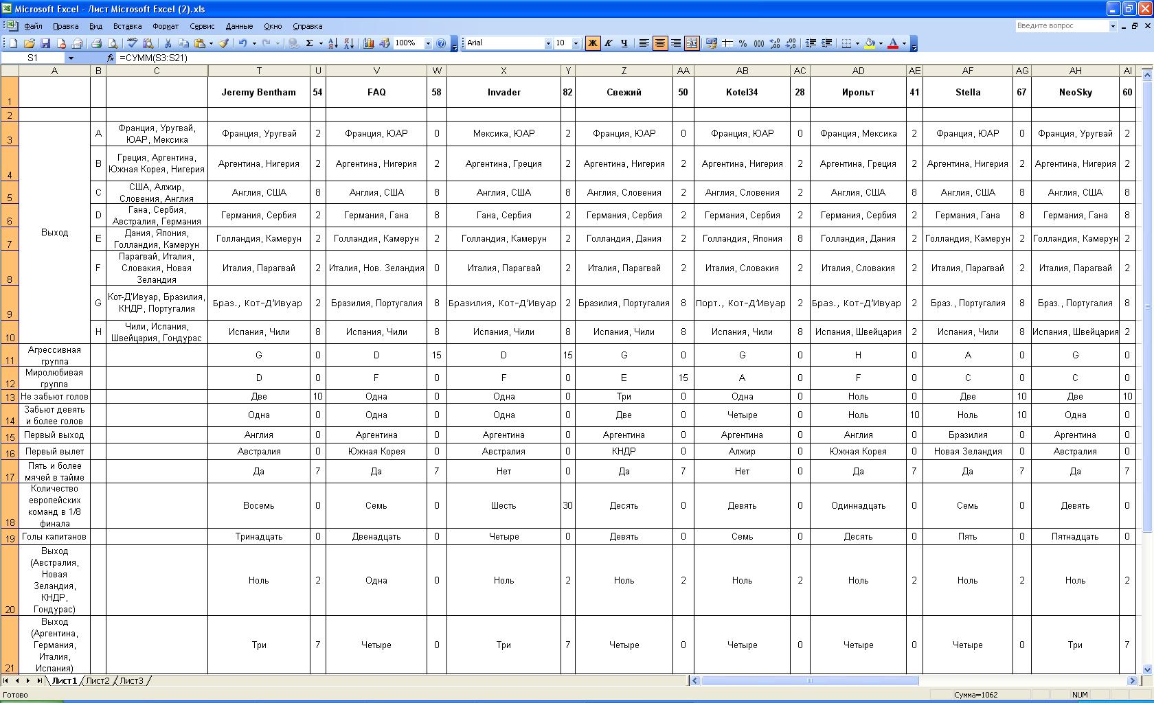 Kotel34, спасибо тебе огромное. Вечером подкорректирую. FAQ, нет. Только на групповой стадии. Если останусь жив, то вечером дам окончательные итоги группового этапа.