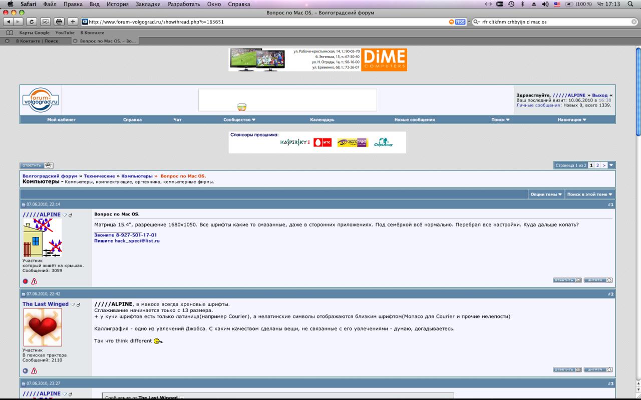 /////ALPINE, в макосе всегда хреновые шрифты. Сглаживание начинается тоько с 13 размера. + у кучи шрифтов есть только латиница(например Courier), а нелатинские символы отображаются близким шрифтом(Monaco для Courier и прочие нелепости) Каллиграфия - одно из увлечений Джобса. С каким качеством сделаны вещи, не связанные с его увлечениями - думаю, догадываетесь. Так что think different