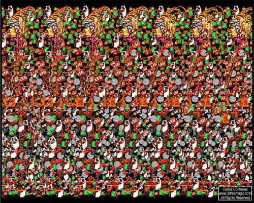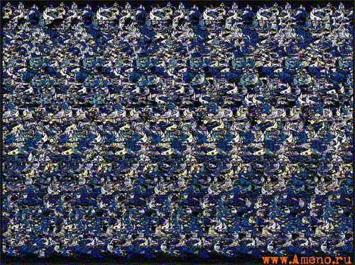 я вообще взгяд не фокусирую - наоборот, максимально расплывается мой взгляд - и картинка сама появляется... Вольффф, главное - увидеть первый раз... я в детстве года 3 не мог ничего увидеть... а как первый раз получилось - потом уже без проблем!