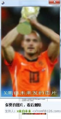 Один китаец, написал на форуме что он из будущего. В качестве доказательства (пост от 13 июня!!!) он написал, что в финале ЧМ сыграют Голландия и Испания. Первые выиграют 2-1, за них забьет Снейдер и игрок, вышедший на замену. В качестве доказательств (только по е-мэйлу) он готов предоставить различные фотки из будущего.