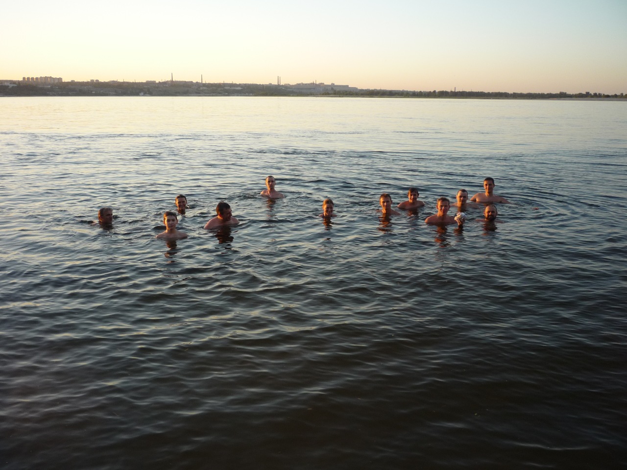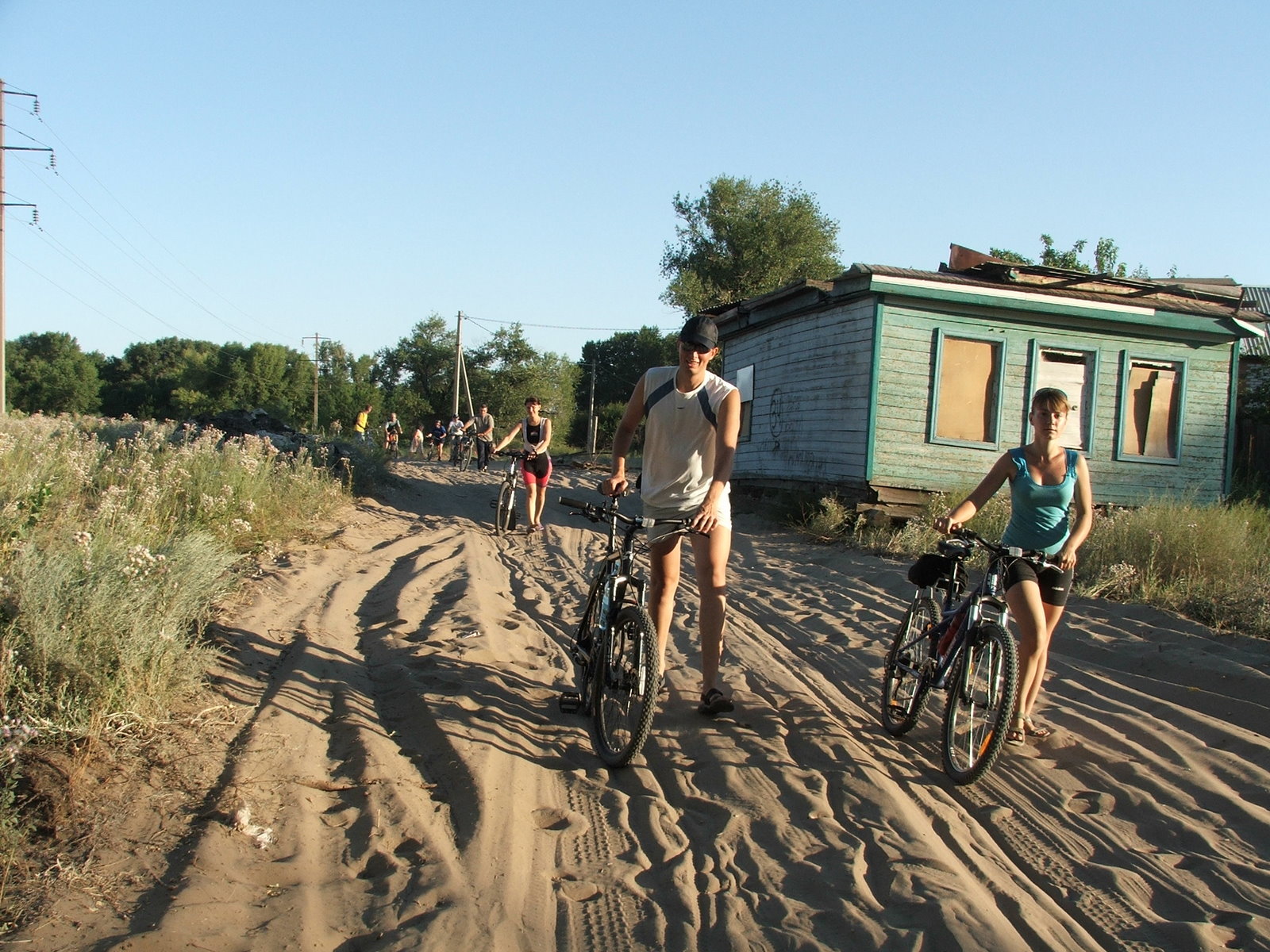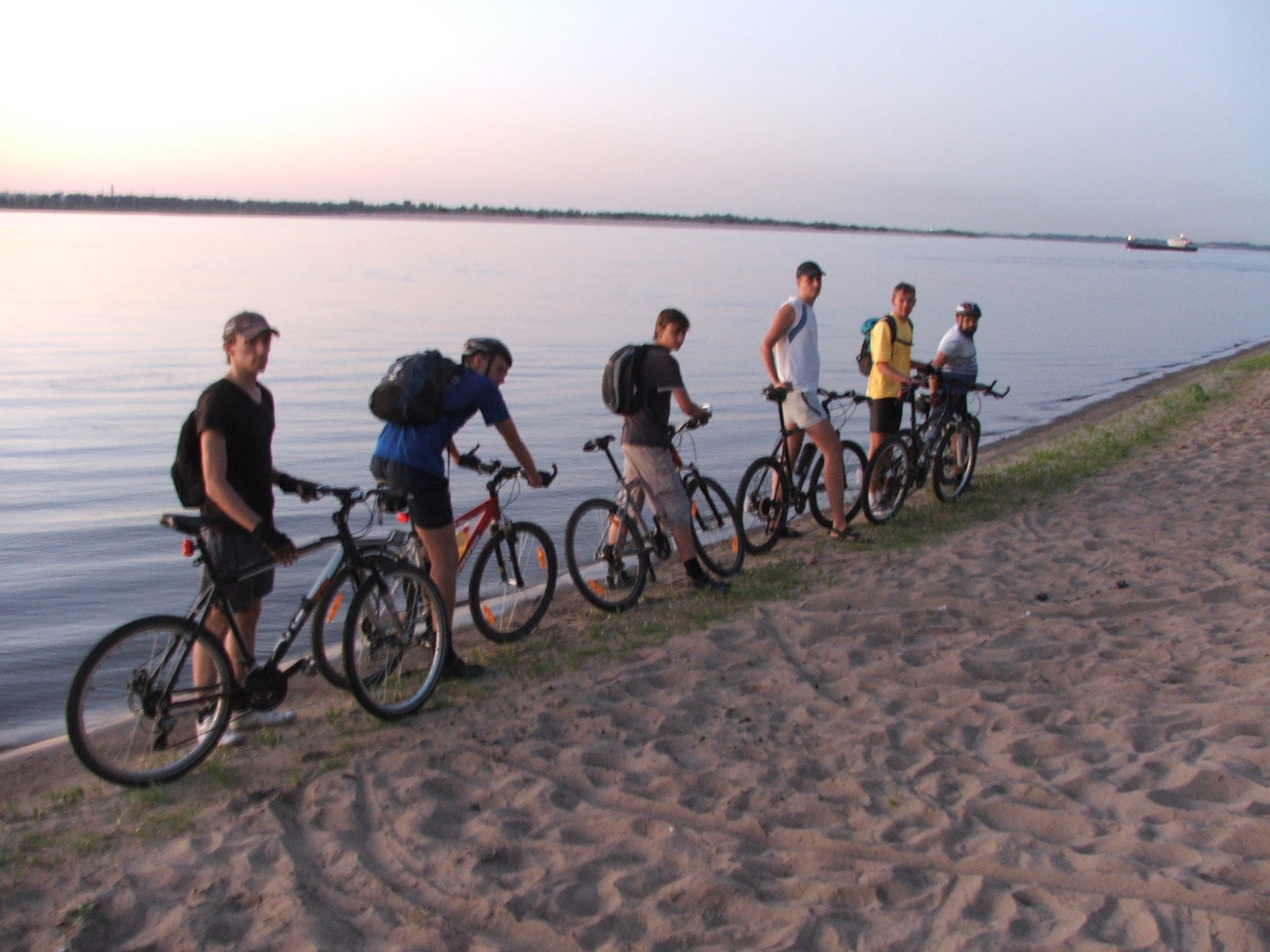 Живо представил картину: вереница разномастных велосипедистов со всех районов города во главе с tRIDENT, не спеша, через пески и лес двигается к пляжу. Добравшись до пляжу, все спешиваются и располагаются на камнях (песку). Через некоторое время море голов расплывается по Волге. Все удовлетворенно фыркают, ныряют,мотают головами и, накупавшись, не спеша выходят на берег. На берегу их ждет цистерна горячего чаю, разные вкусности и ...т.д. Картина маслом.