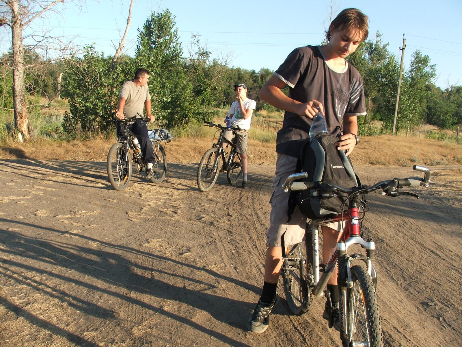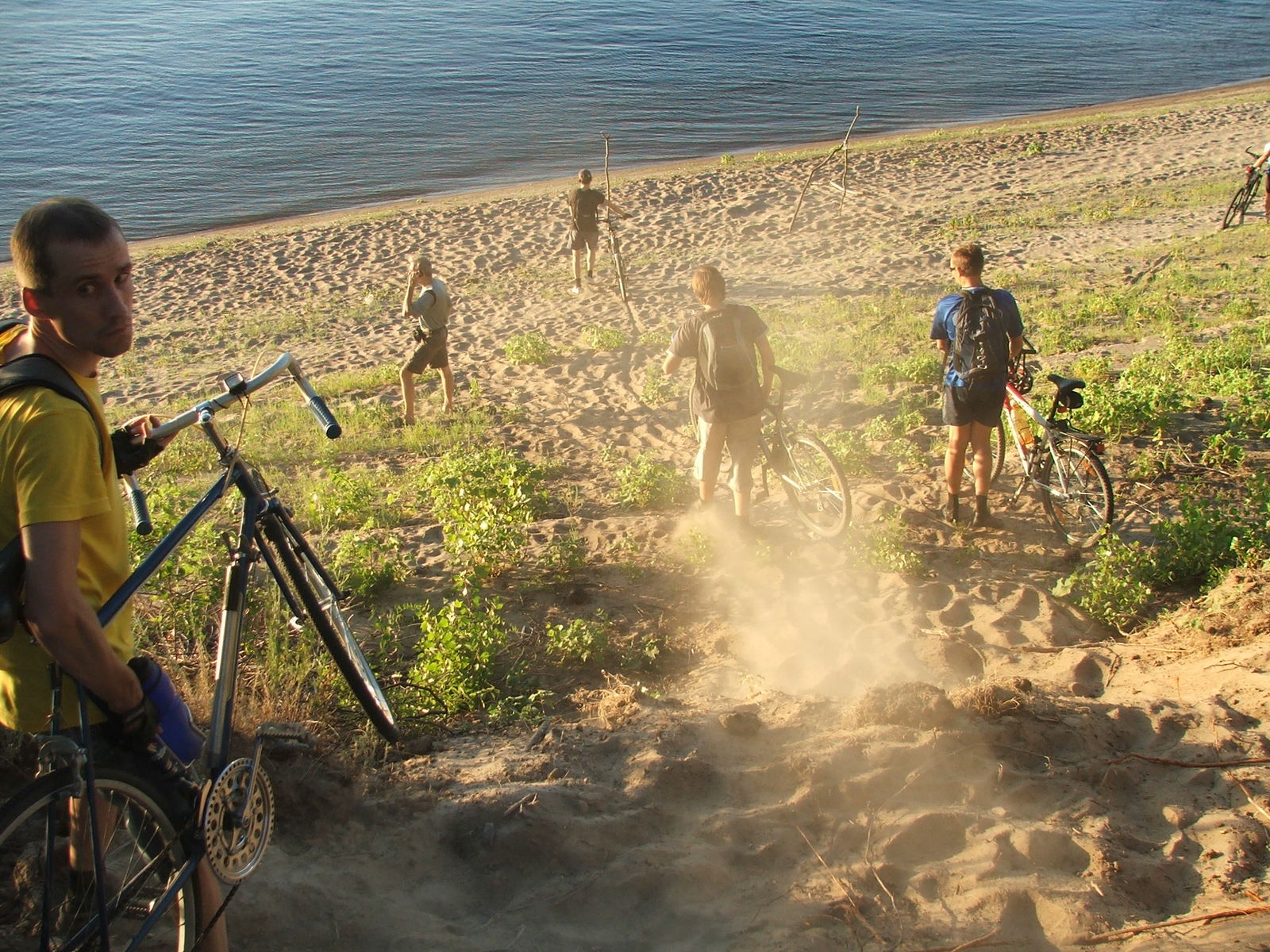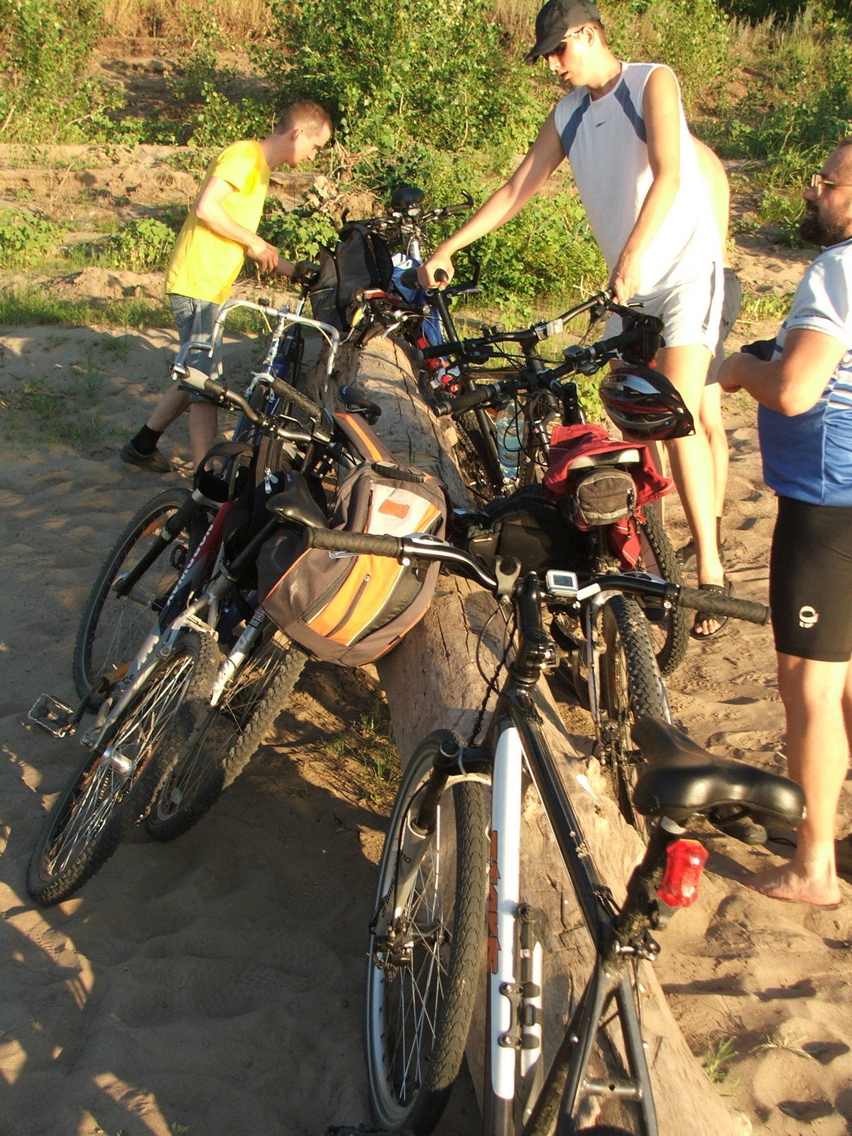 А у меня на флешке битые сектора. щас попытаюсь восстановить, но возможно - финальная часть фоток потеряна безнадежно. В общем ждите, в течении дня выложу, что останется целым ---------- Сообщение добавлено 21.07.2010 12:00 ---------- Ну в общем с самого начала в глазах запестрило. Столько велосипедников в одном месте - просто рай какой то. Поговорили, построились и двинулись по мостику, а за ним свернули в Бобры. Местные жители и козы были несказанно обрадованны нежданному развлечению, и проявляли крайнюю любопытность. А сразу после хутора нас поджидал тот самый песочек, которого нам обещали не более двух метров. Забегая вперед скажу, что песка оказалось раз 10 по 2 метра, и несколько чуть большИх по длине, и один метров этак на 150. в общем было здорово. Проехав еще некоторое рассояние - буквально километр или чуть более, мы наткнулись на полянку, где обнаружили детский палаточный лагерь. Искренне порадовались за детей, которым было явно по кайфу их времяпровождение, и стали ждать немного отставшую часть группы. минут через 5 поехали дальше, и скоро оказались на замечательном пляже. Вернее НАД замечательным пляжем, и естественно мы туда спустились вместе с велосипедами, и там уже отдыхали. Вода!!! действительно, Такого купального лета я больше припомнить не могу. сколько не плаваешь, а вылазить нет никакого желания. Trident был костровым, а по совместительству - чаечерпием.