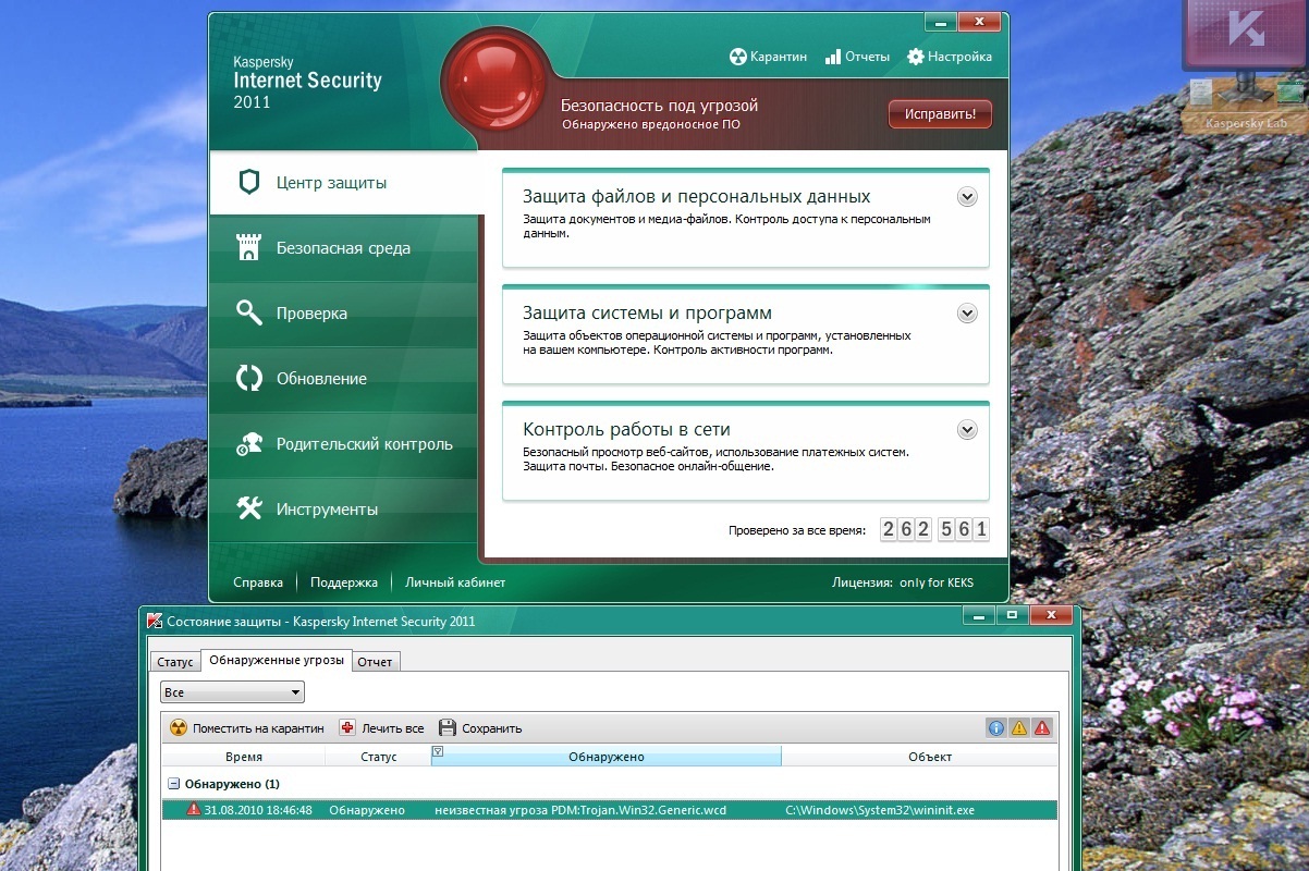 Касперский 2011. Обсуждение Не так давно поставил новую Win7, и к ней решил поставить свежеиспеченный KIS 2011. После двух дней нормальной работы, Касперский озадачил меня следующим событием: Команда "Исправить" и обновления баз проблему не решало. Как оказалось это было обычное ложное срабатывание. Жаль, что информацию об этом я нашел в разделе бета-тестирования данной версии.