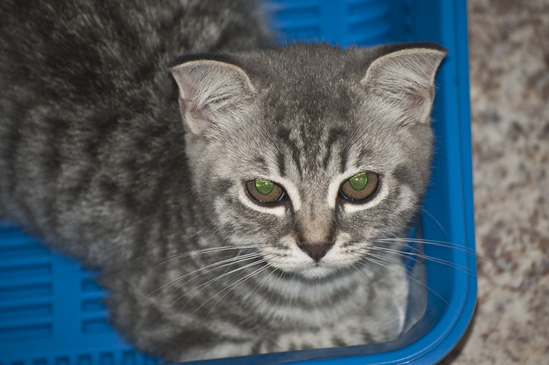 Вчера (30-авг) у нас произошла беда. Так получилось, что приблизительно в 21:30 наша кошка проскользнула в подъезд и пропала. Соседи видели её в подъезде, но найти не удалось нигде. Расклеили объявления в округе... Возможно кто-то забрал себе. Возможно убежала. Кошка домашняя, улицы не видела. Возраст - 4 месяца. Порода - скоттиш фолд (шотландская вислоухая), окрас серый, в полоску. Территориально - ТЗР, ул. Дегтярёва, дом 39. Фото приложены. Если кто-то видел, или нашёл, сообщите, пожалуйста по телефонам: 8-961-681-38-25 или 8-904-7789-423. Кошка очень дорога нам, сильно переживаем потерю, если кто-то видел - отзовитесь.