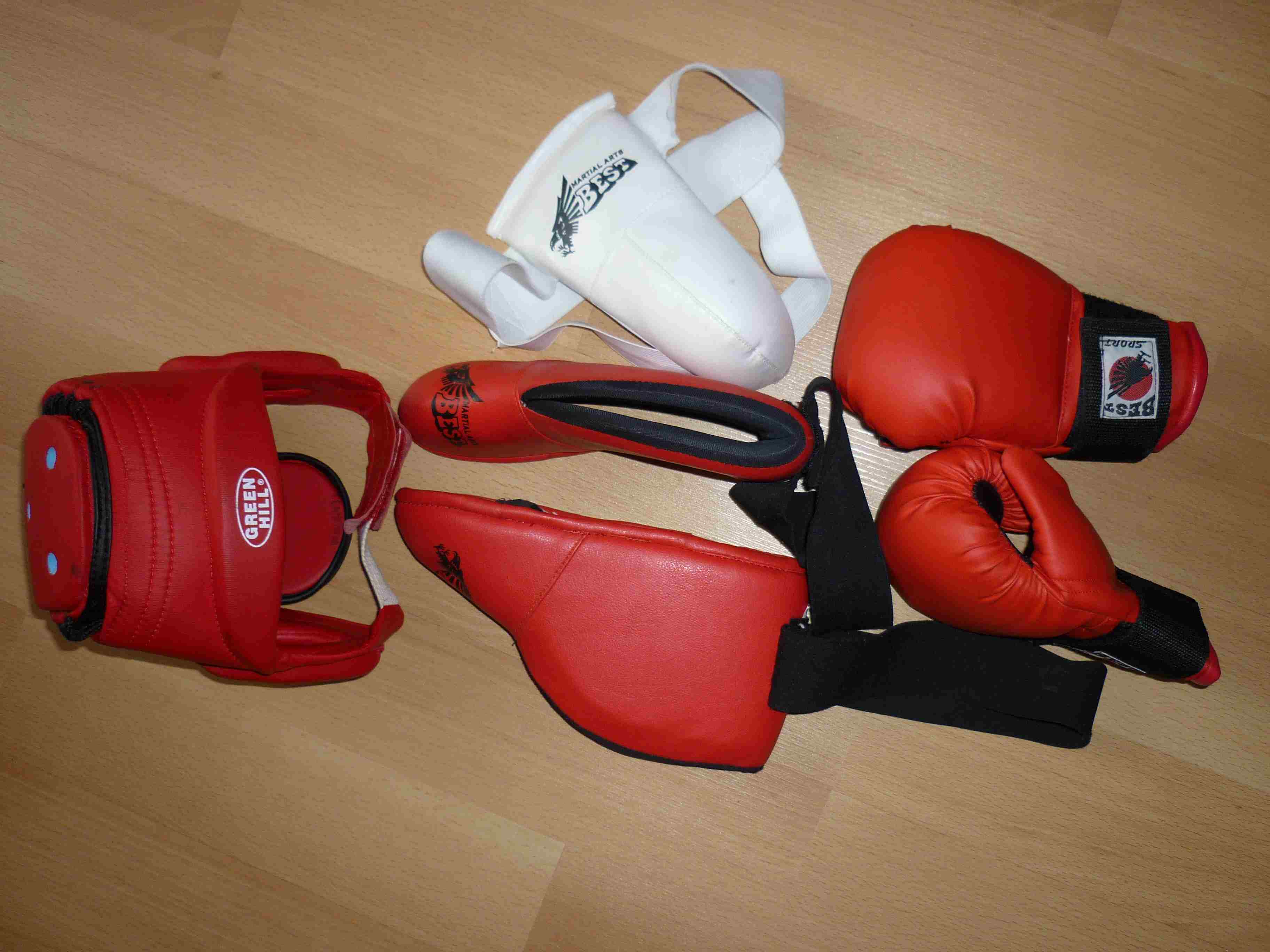 Размеры расчитаны на ребёнка от 7до 10 лет. Белая форма для тейквондо ГТФ в отл. состоянии, на рост 140 см. Цена 1 тыс. руб. Снаряжение красного цвета в отл. состоянии цена комплекта 2 тыс. руб.: - Шлем "Green Hill" размер М, с вентиляцией, регулируется по размеру шнуровкой, - Перчатки "Best" размер S, - Футы "Best" размер S, - Паховая защита "Best", цвет белый. район Спартановка, тел. 8 917 838 87 67.