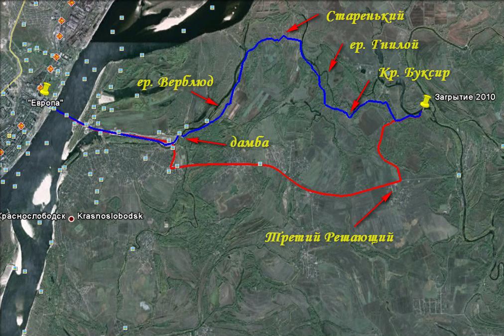 Ещё раз по поводу места Закрытия 2010. Закрытие будет на той же поляне, что и Открытие 2008. От "Европы" асфальтом- 18,4 км (красный трек). После моста поворот на трассу Краснослободск - Средняя Ахтуба в сторону Средней Ахтубы, далее до Третьего Решающего и поворот налево на Лебяжью Поляну. Далее по рисунку № 2. Последние 1,7 км - грунт. Для любителей проехаться по грунтам (синий трек). После моста поворот к Верблюду, далее переезжаем через дамбу и вдоль левого берега Верблюда до Старенького. От него к ерику Гнилому по направлению к Красному Буксиру. Далее по рисунку №2. Расстояние по треку - 19 км. Координаты поляны: 48г 43м 20с С 44г 43м 28с В