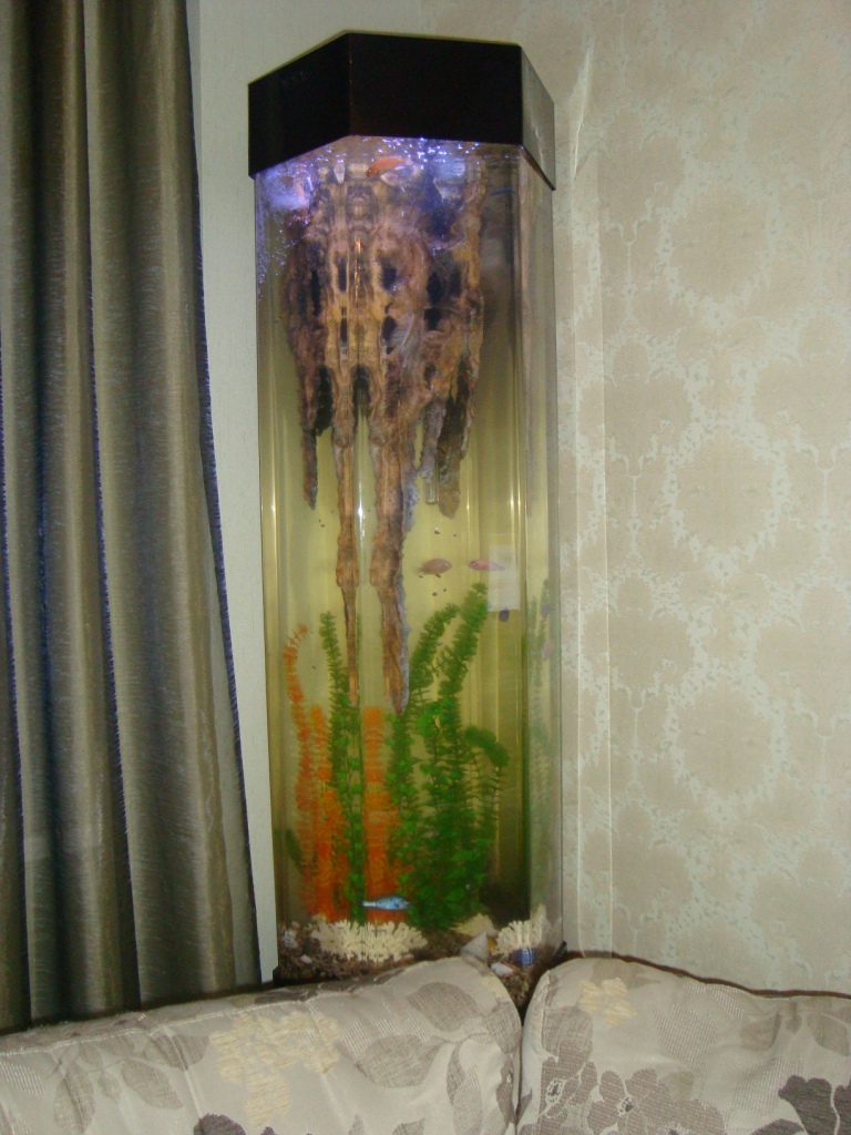 акриловый аквариум, колонна, 250 литров. В комплекте фильтр, подсветка, декорации... Цена 35 тыс