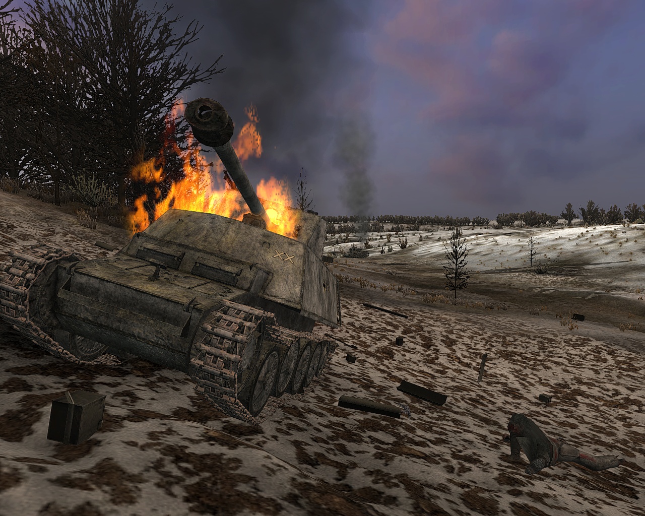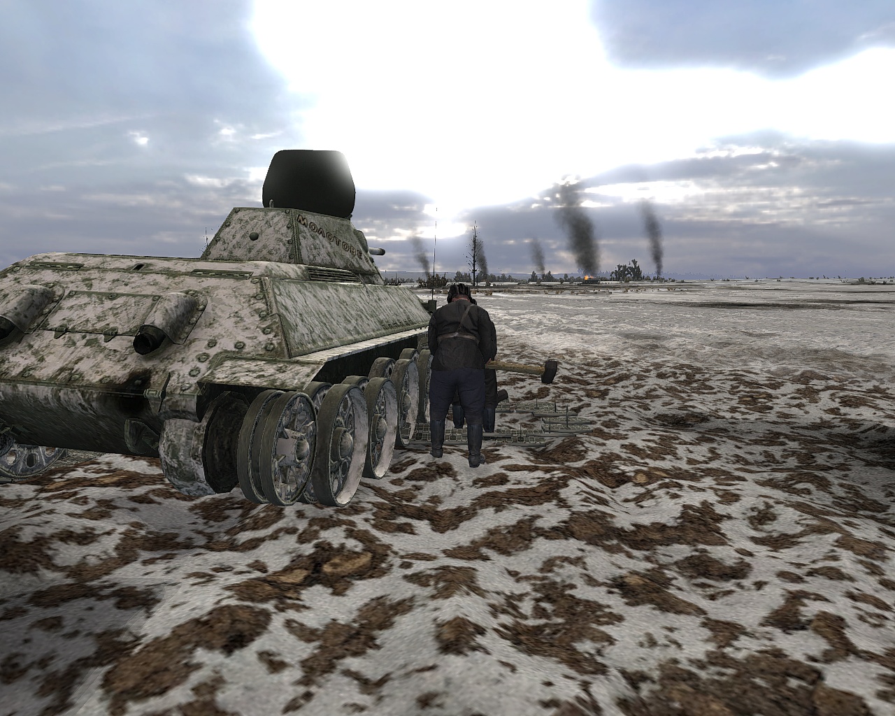 После выхода нового патча я не удержался от маленького отчёта ... Значит ситуация такая - после моей неожиданной для немцев разведки боем в близи села танковым взводом, проклятые фашисты потеряли 12 единиц БТРов и решили пойти в наступление несмотря на значительные потери, скриншоты наступления немцев прилагаются Немецкая атака с фланга - захлебнулась: 1-2 скриншот ... и немцы решили обойти по балке.. где их тоже ждали: 3й скриншот После скоротечного и жаркого боя хлопцы чинят стального друга: 4й скриншот "Пожарная" команда готовится к переброске, к сожалению через 2 км марша их ждёт засада и мнговенная смерть 5й скриншот ЗЫ С выходом нового патча теперь в бою учавствует больше войск , боевые действия стали более напряжённые.