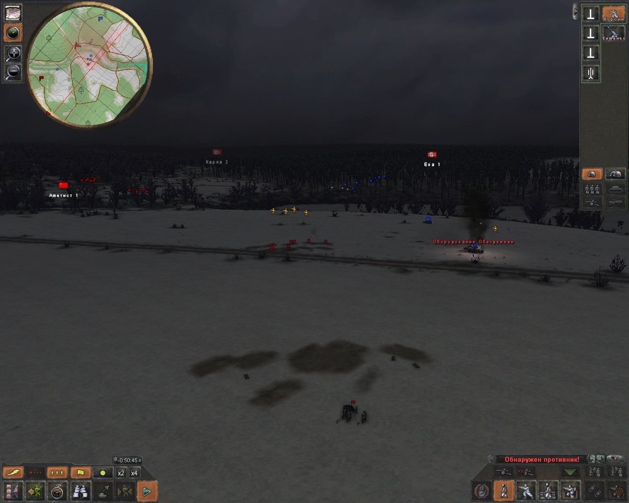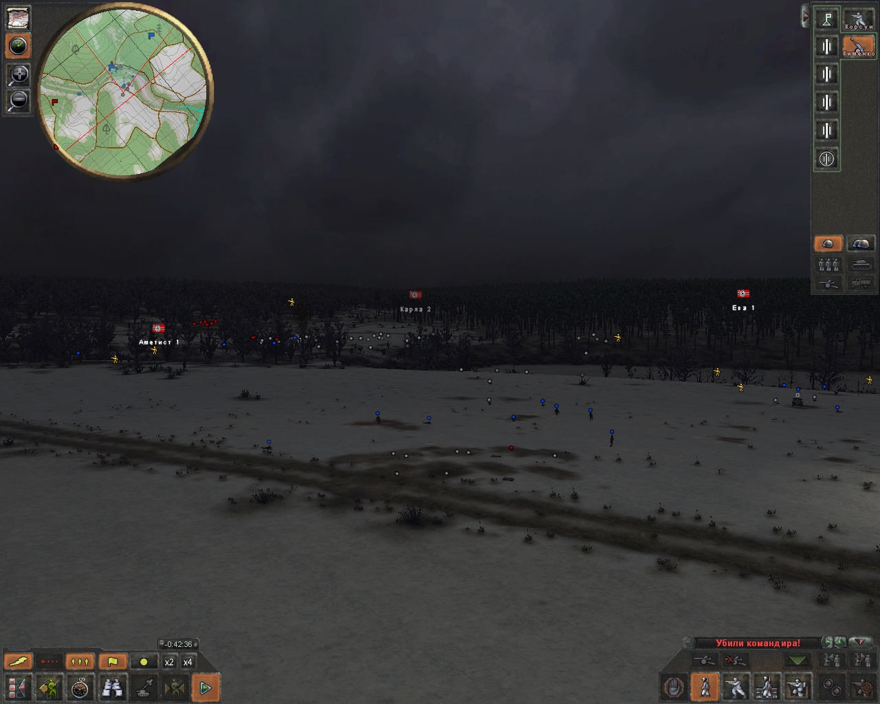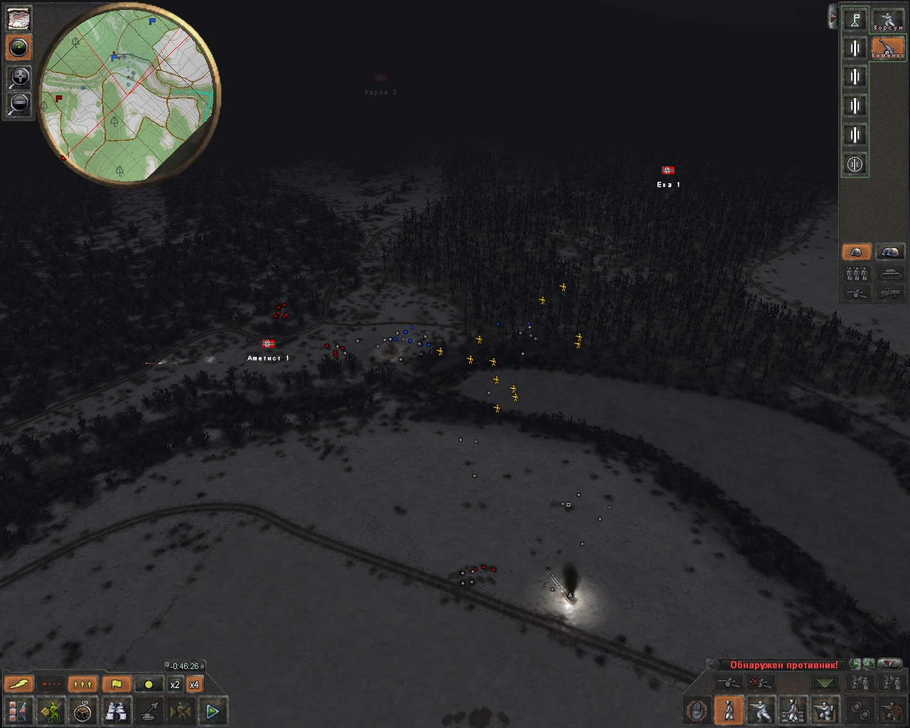 Небольшой очерк об одной из операций, человека разобравшегося в игре. "Применение танков. Т-70 наткнулись на несколько немецких отделений с БТРами, когда я их перебрасывал лесом. В результате 1 танк потерян, один поврежден. Немцы разбежались потеряв БТРы."