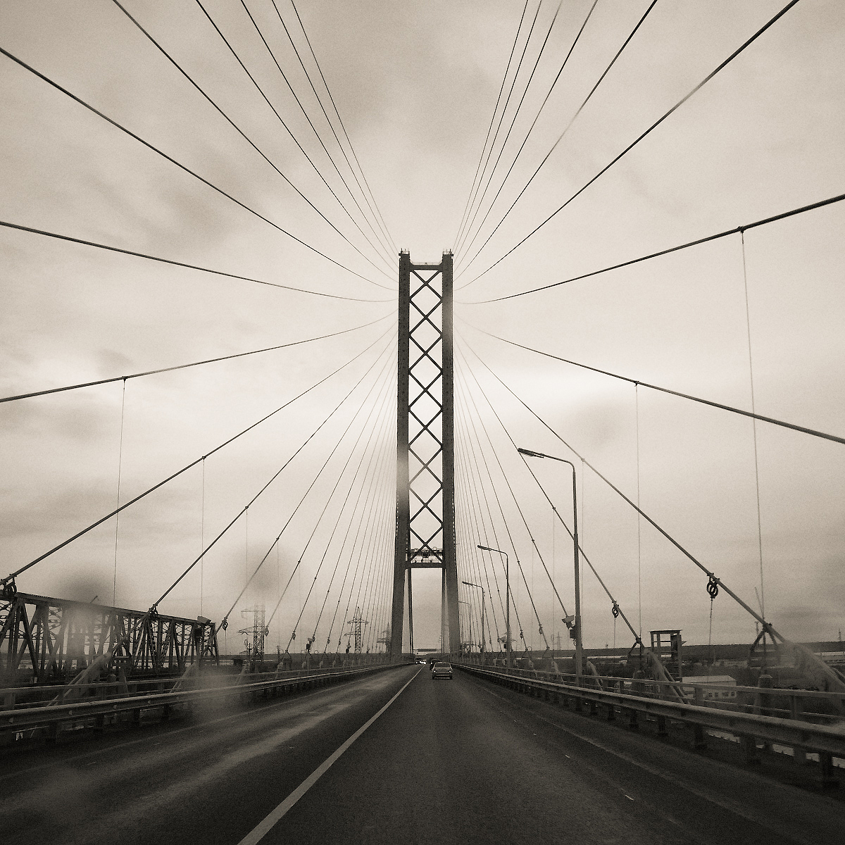 M@x86, надо маршрут № 4 "Юг-Север" как-то обыграть А Сургутский мост мне несколько лет покоя не давал) Фотографировал сын из люка движущейся машины, могла давать только ЦУ, так как за рулём, немного дождь помешал...