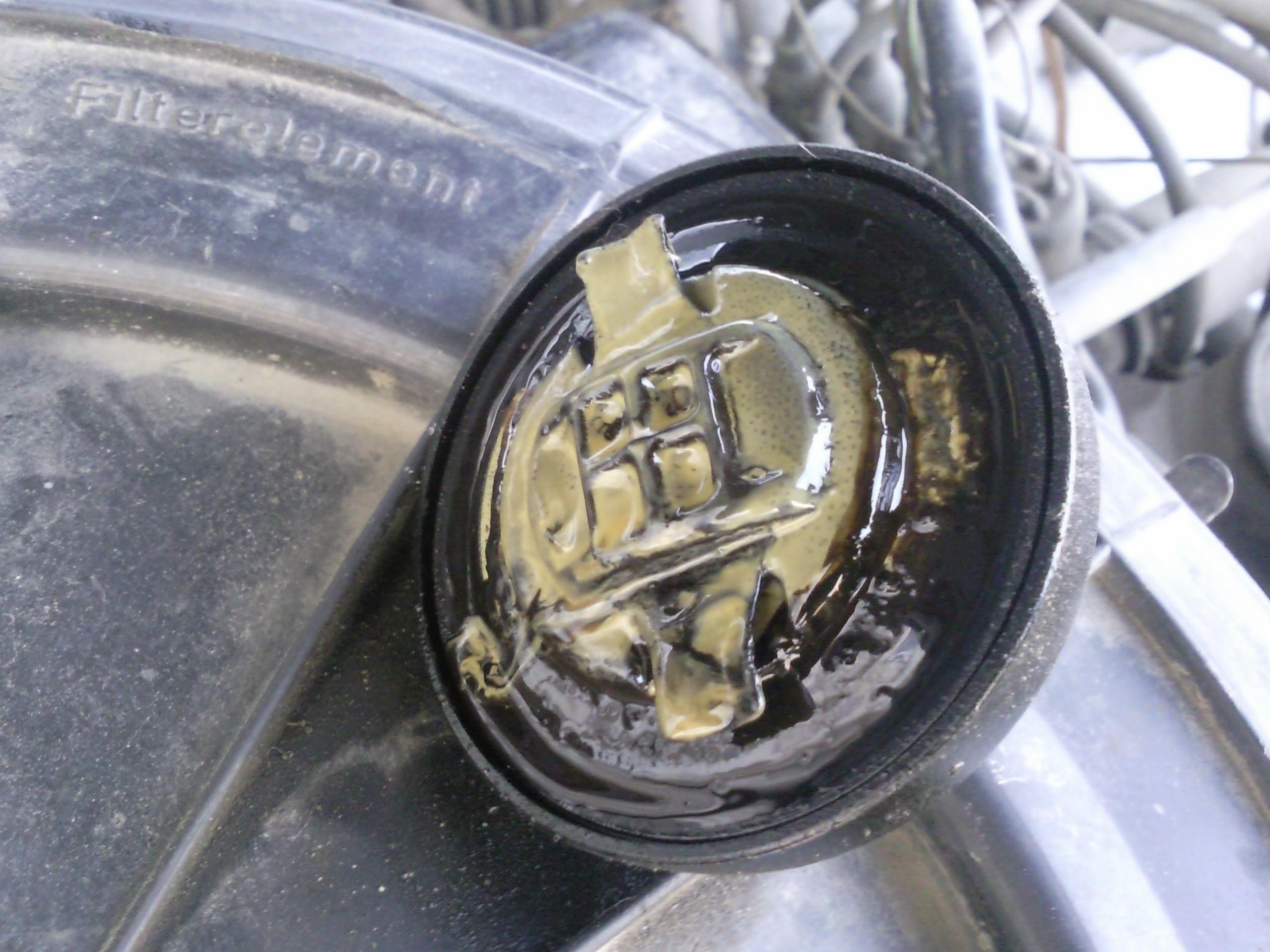 Сегодня с утра с 1го раза незавелась, со второго тоже но хватает. Думаю терять нечего потопчу педаль, Ррррррррррррр!!!!! Дальше без педели с 1го раза. Подливал масло, увидел такой ужас, крышка заливной горловины... Это просто от холода? Зы у друга на 07 то-же самое только оранжевое.